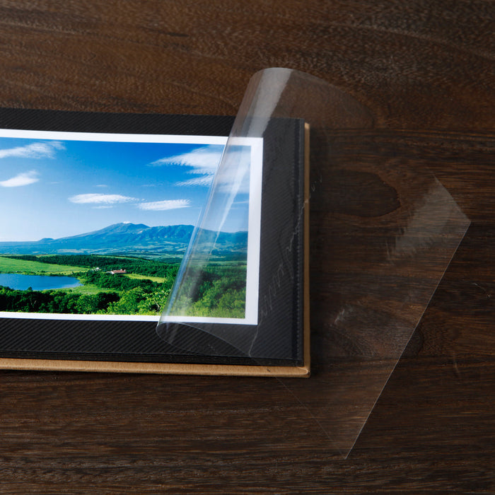 Store your most precious photos and postcards safely with this protective hardcover photo album. The clear plastic film has a light adhesive backing, making it ideal for scrapbooking and securing photos to a specific position.