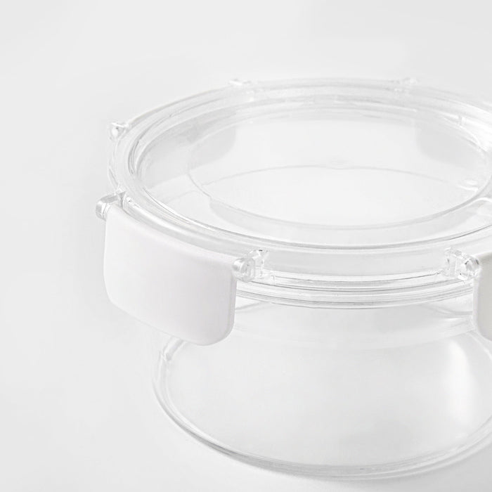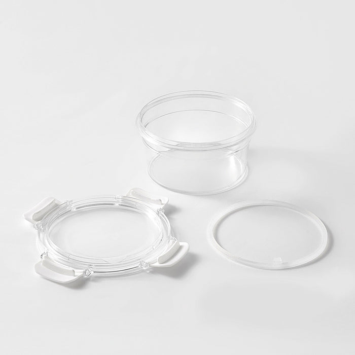 Organize your pantry or refrigerator with this large 25.7 fl oz (760 ml) round food storage container. Lightweight and BPA-free, this container offers clarity and brightness, making it easy to view contents at a glance. The lid features a secure four-sided locking mechanism and a removable silicone seal to ensure an airtight environment, keeping your grains or larger leftovers fresh and protected from moisture. Its stackable design helps you maximize vertical space, while the wide opening and easy-to-remove gasket ensure a thorough and convenient clean.