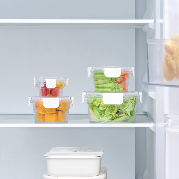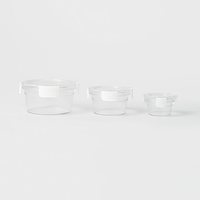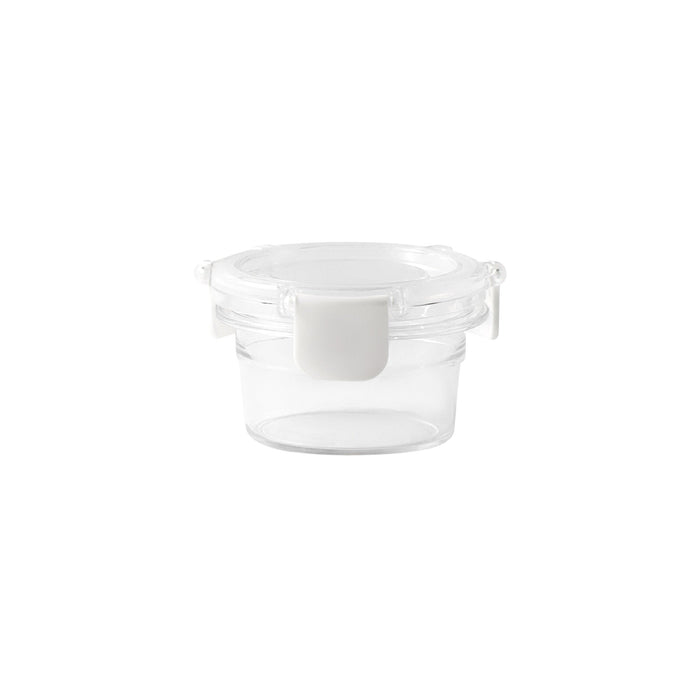 Keep smaller portions and condiments fresh with this compact 3.89 fl oz (115 ml) round storage container. Its portable size is perfect for taking snacks or dressings on the go without the weight of glass. Made from BPA-free material, it features an airtight seal and a three-point locking lid to protect against spills and moisture. The material remains bright and clear even with frequent use, while the stackable lid allows you to layer multiple units in the refrigerator to save space. Designed for convenience, the wide opening ensures easy access and effortless washing.