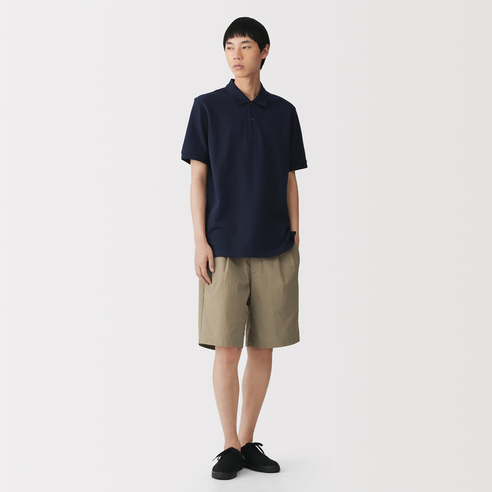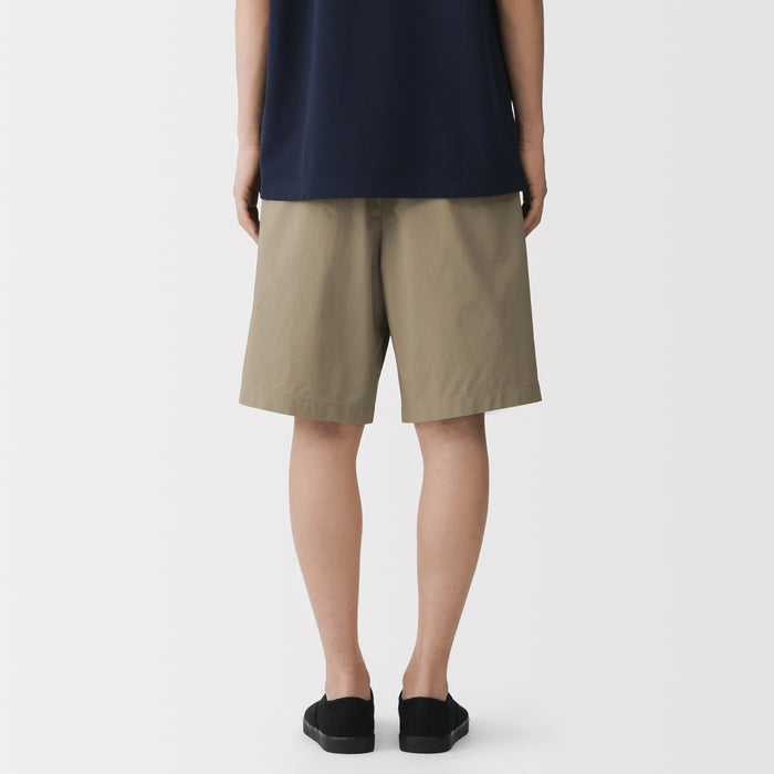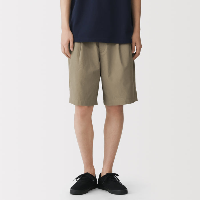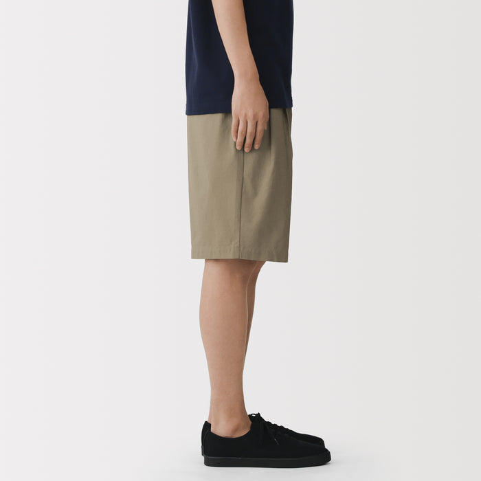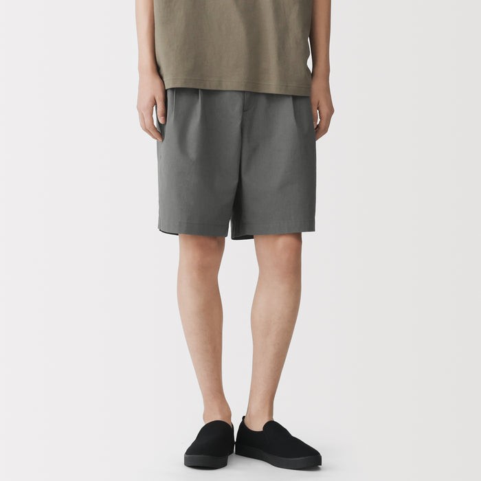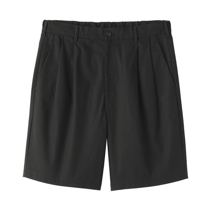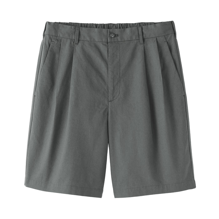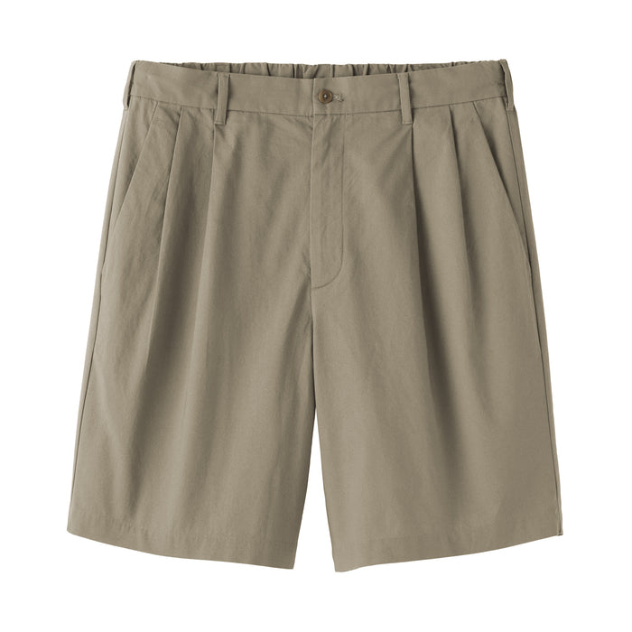 Men's short pants featuring a cooling 100% organic cotton material for a smooth and sleek texture that is comfortable on the skin. This design features double front pleats and a conventional trouser waistband with belt loops for a neat, put-together appearance.