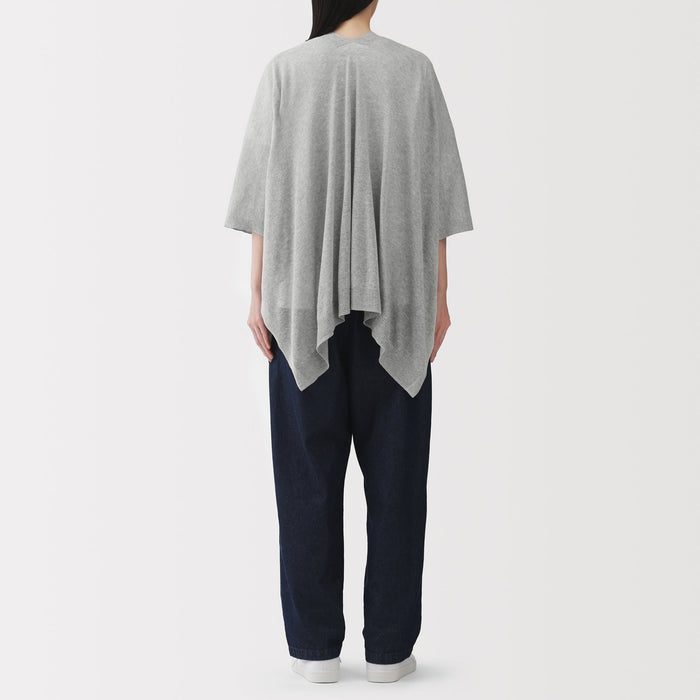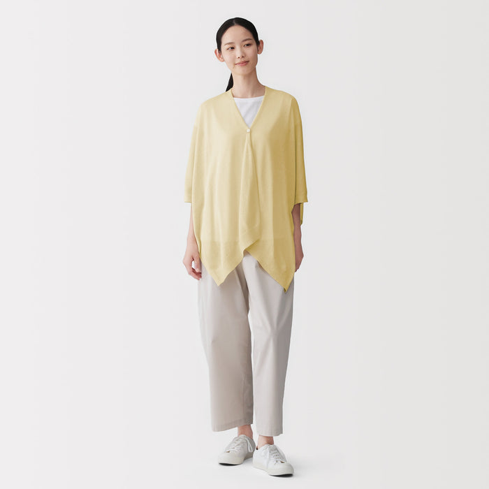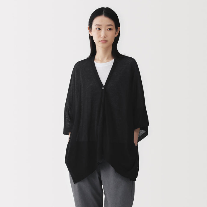 The length of this piece covers the hip line, making it a comfortable and flattering design to wear. It folds compactly, making it easy to carry for travel and also useful to keep you warm from indoor air conditioning.