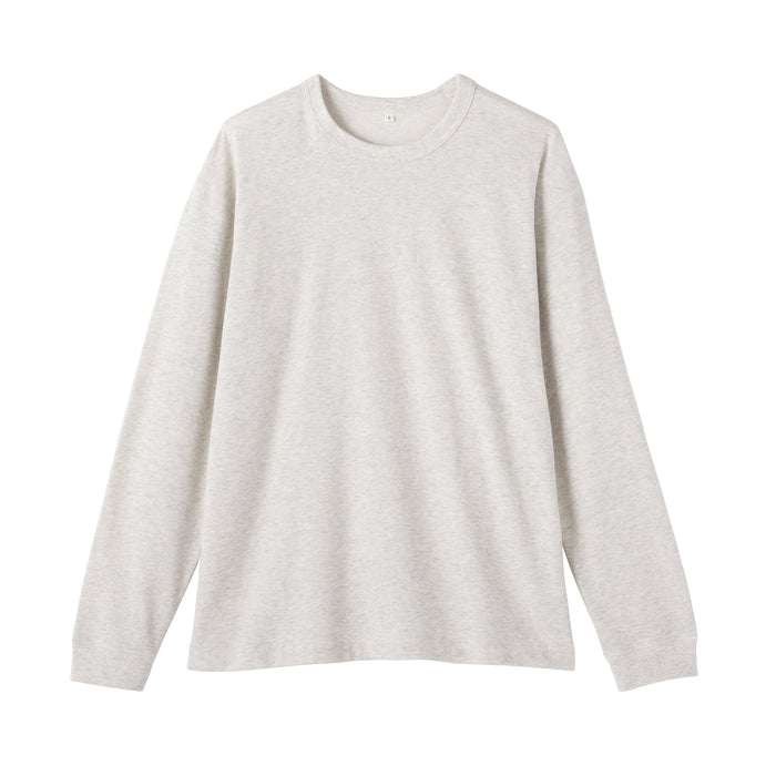A men's long sleeve t-shirt made of an organic cotton material that has an extremely soft and airy texture. The relaxed silhouette is comfortable to wear when going out or lounging at home.