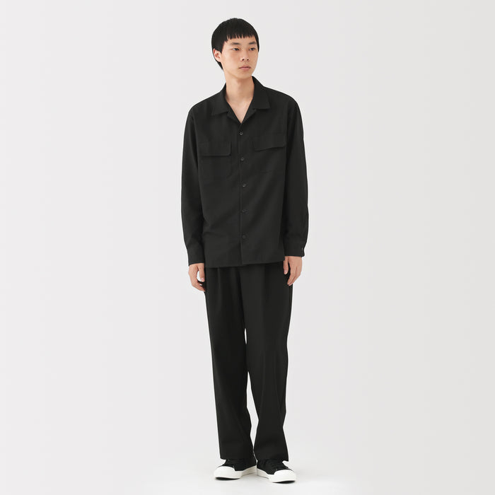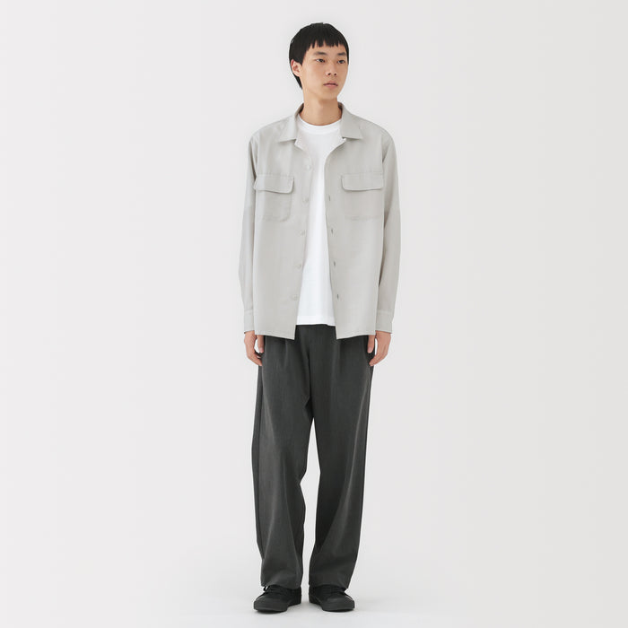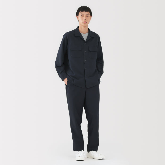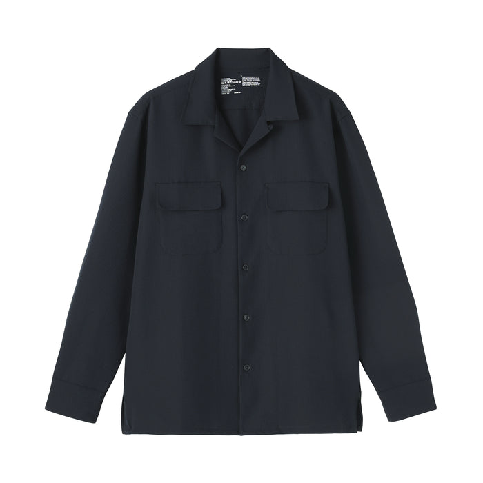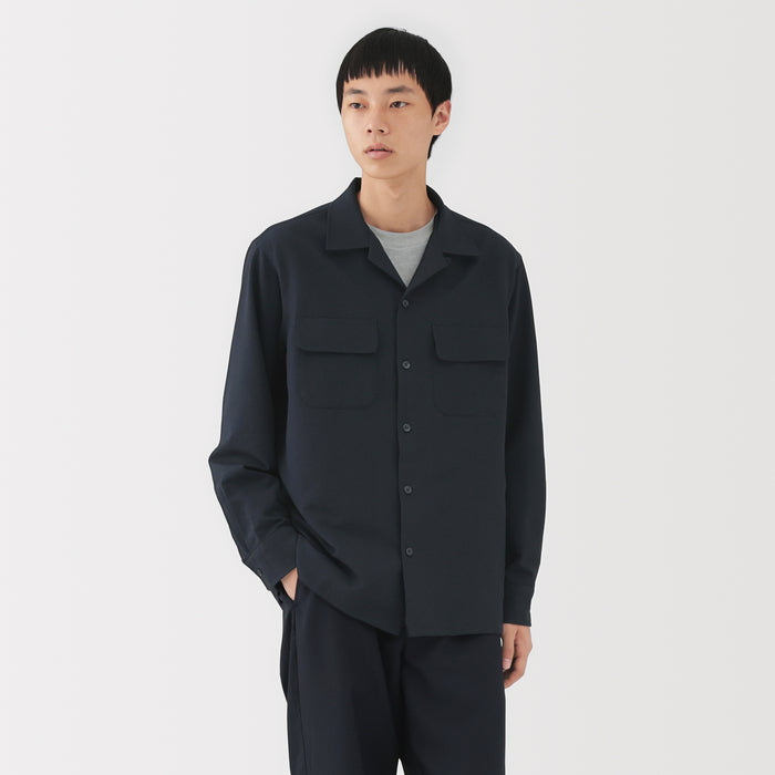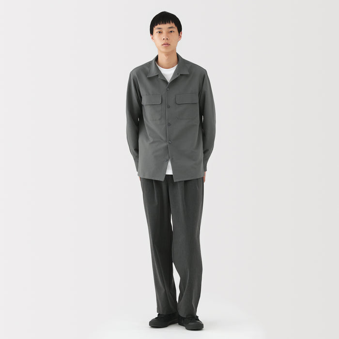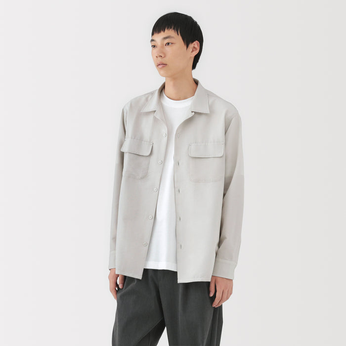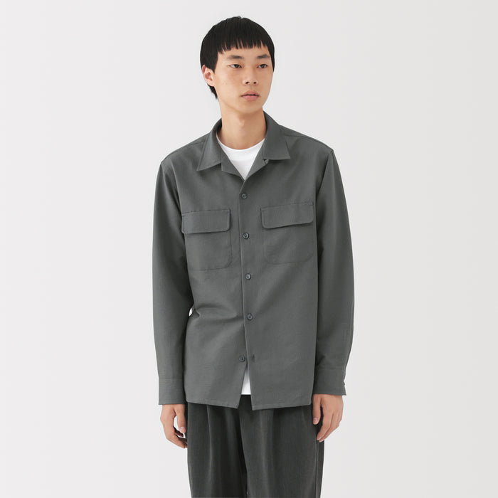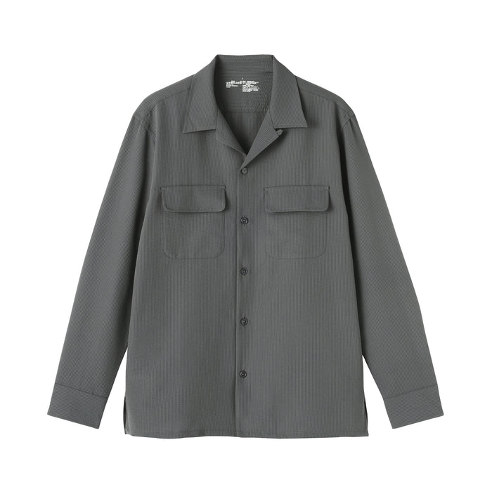 This Seersucker shirt jacket is made from an lightweight, quick-drying fabric with tiny ventilation holes created through special processing for breathability. It is designed with a roomy silhouette that is breezy and comfortable to wear on hot days. Made with partially recycled materials.