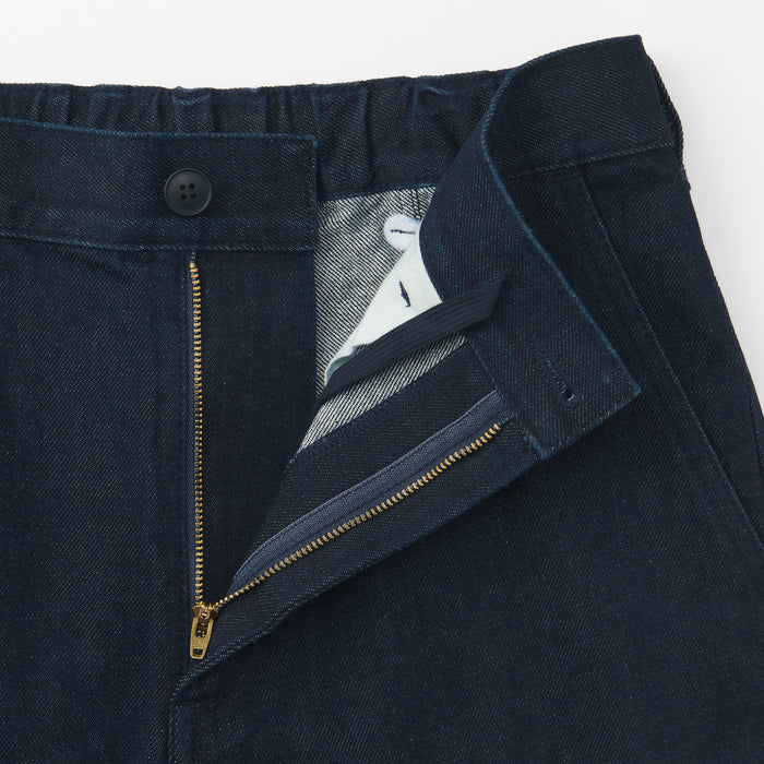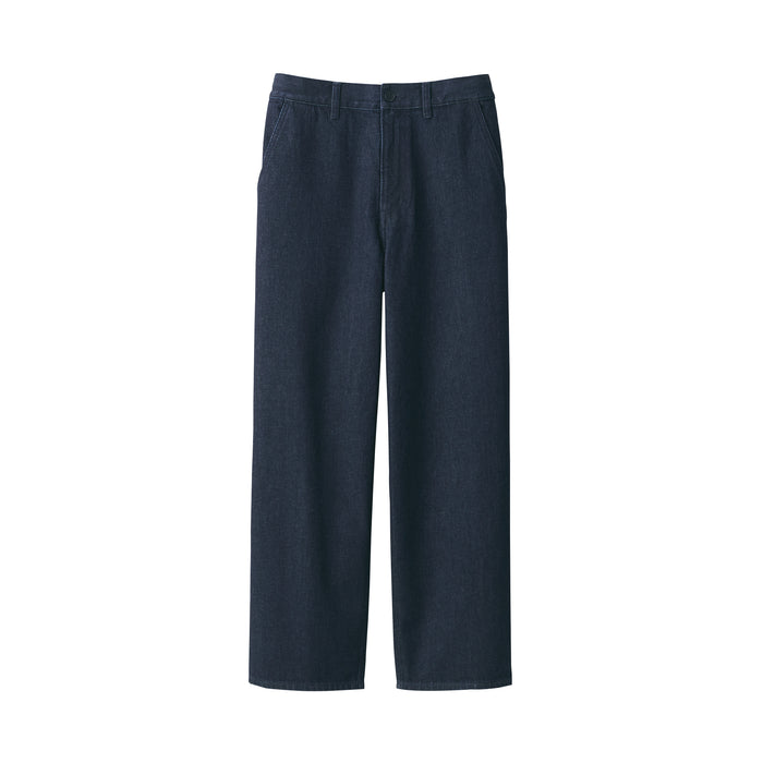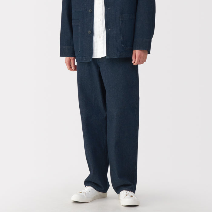 Men's denim wide pants designed with a wide silhouette that gives you room to move comfortably all day. By using a fabric that mixes organic cotton with natural kapok fiber, an environmentally friendly plant grown without pesticides, it is softer and lighter than conventional 100% cotton.