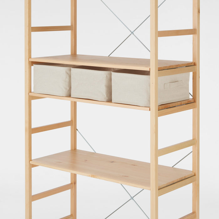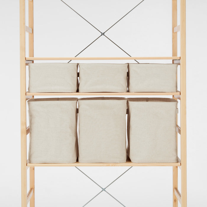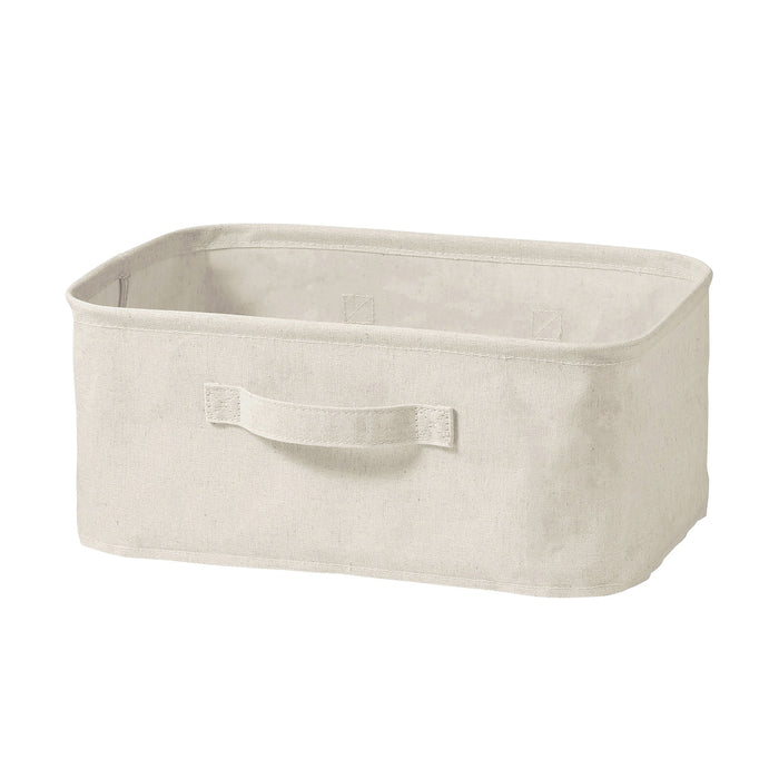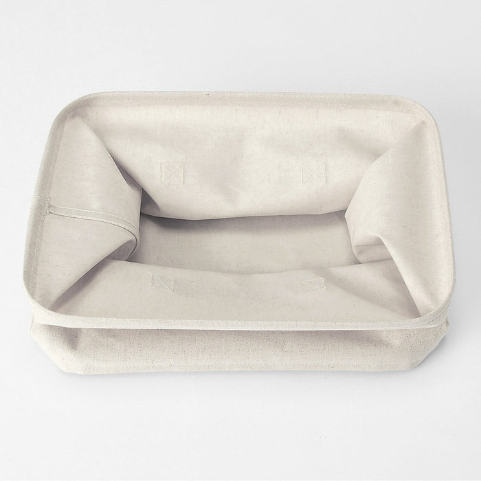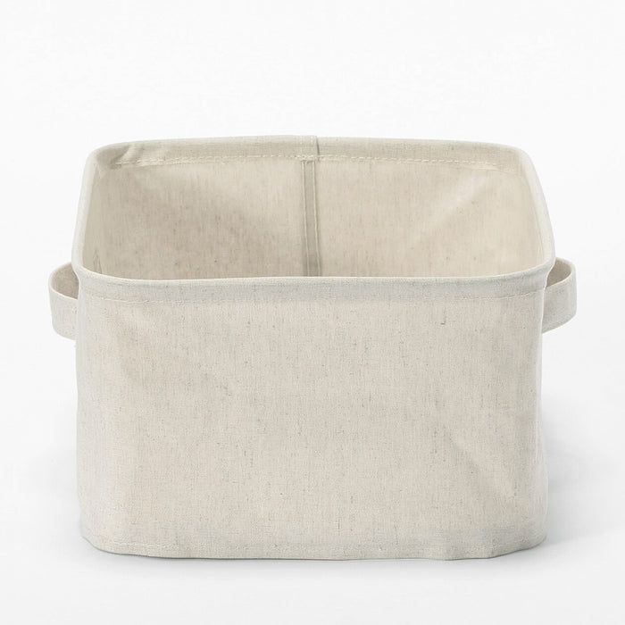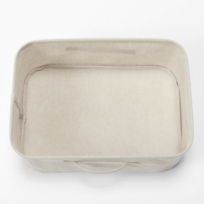 A foldable rectangular cloth storage box with a coated inner surface to protect your items. The included handle means you can access it easily even when it is stored up high.