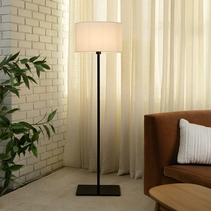 This floor lamp has an oval shade and a steel base that creates a relaxing ambiance with subtle lighting and a modern aesthetic. Its simple design is perfect for any bedroom or living room.
