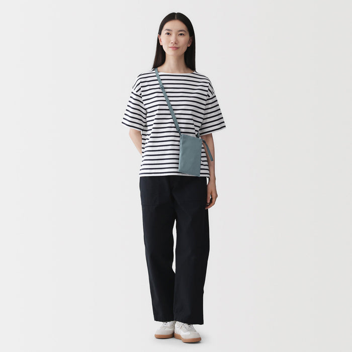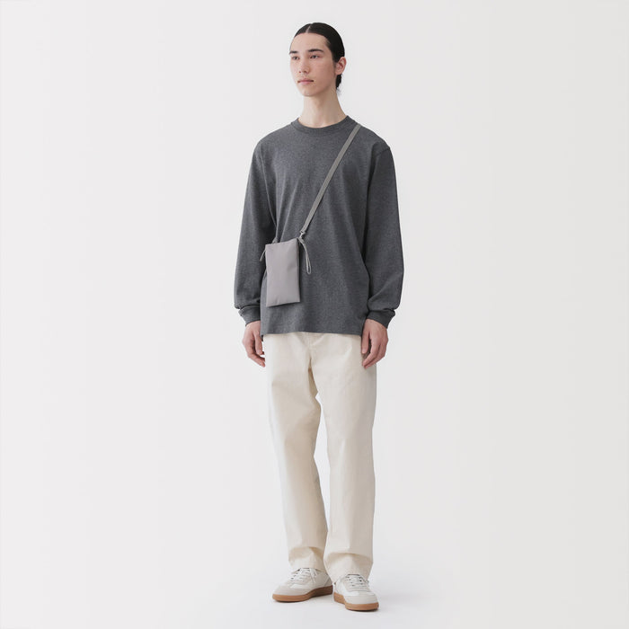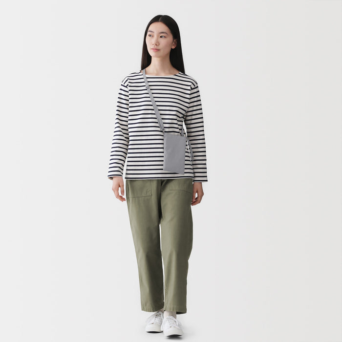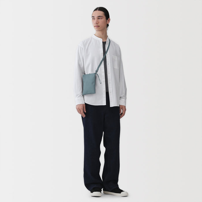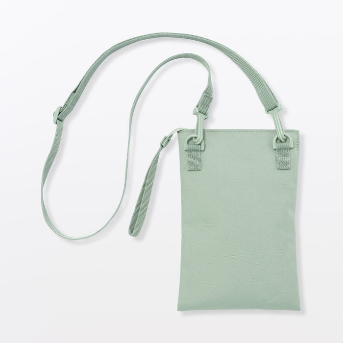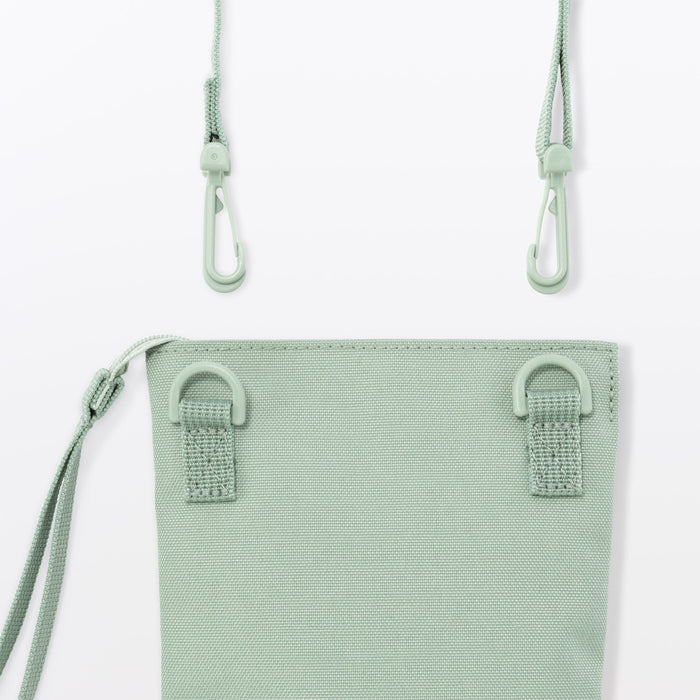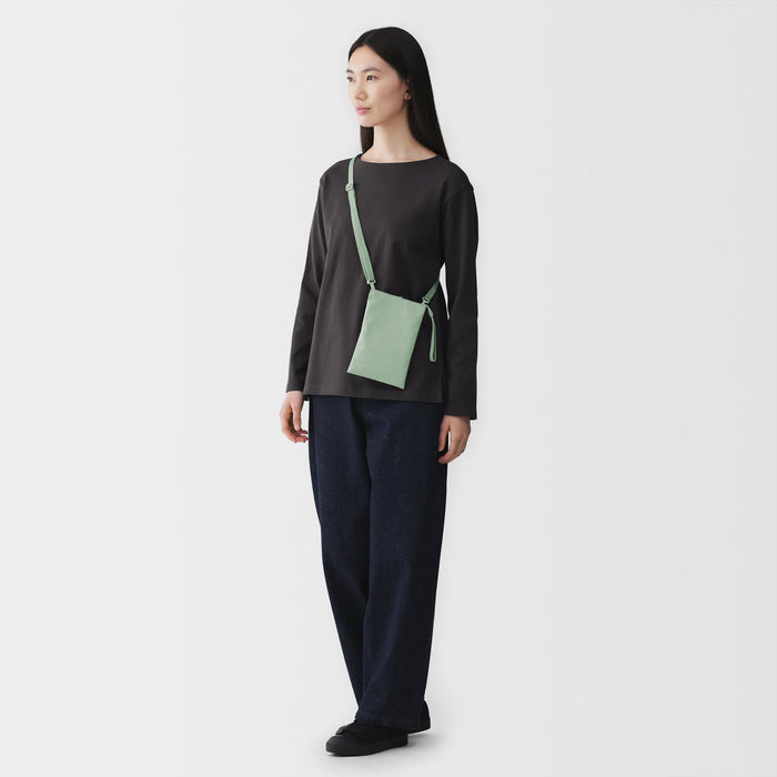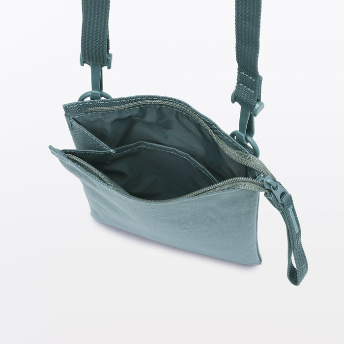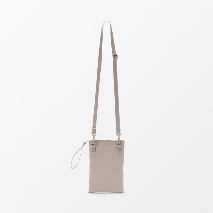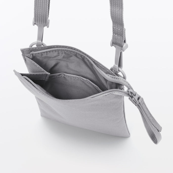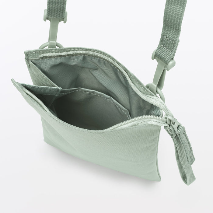 This compact, shoulder-slung pouch is the perfect size to hold all of your daily necessities for quick outings. Made from recycled polyester, it has a water repellent coating to protect your belongings. There is an interior divider to help keep its contents organized and easy to find.