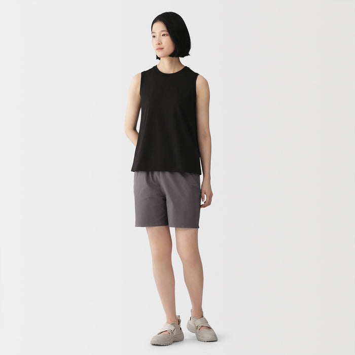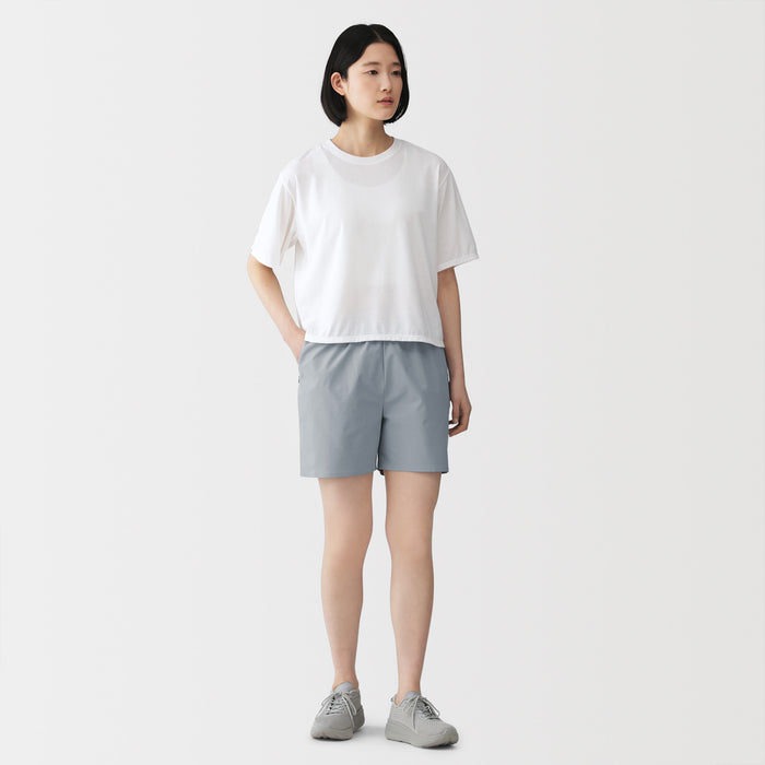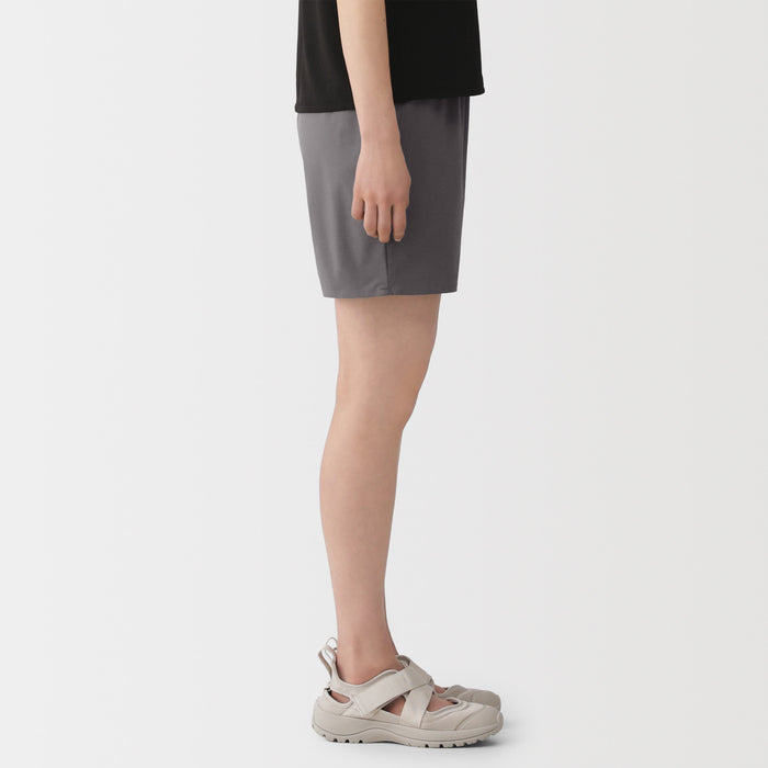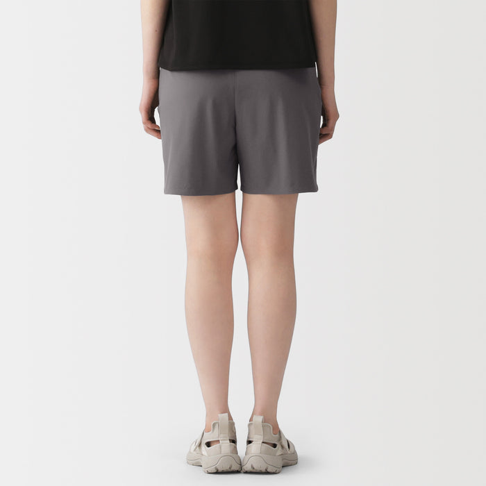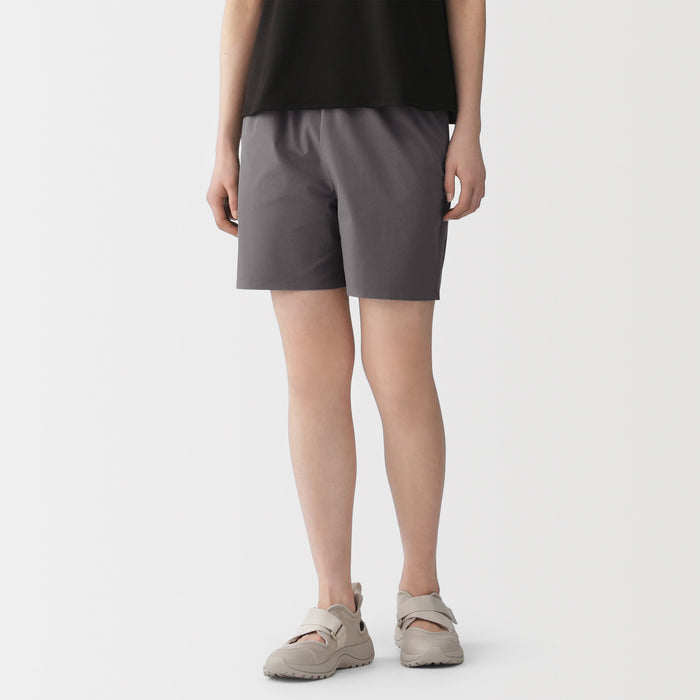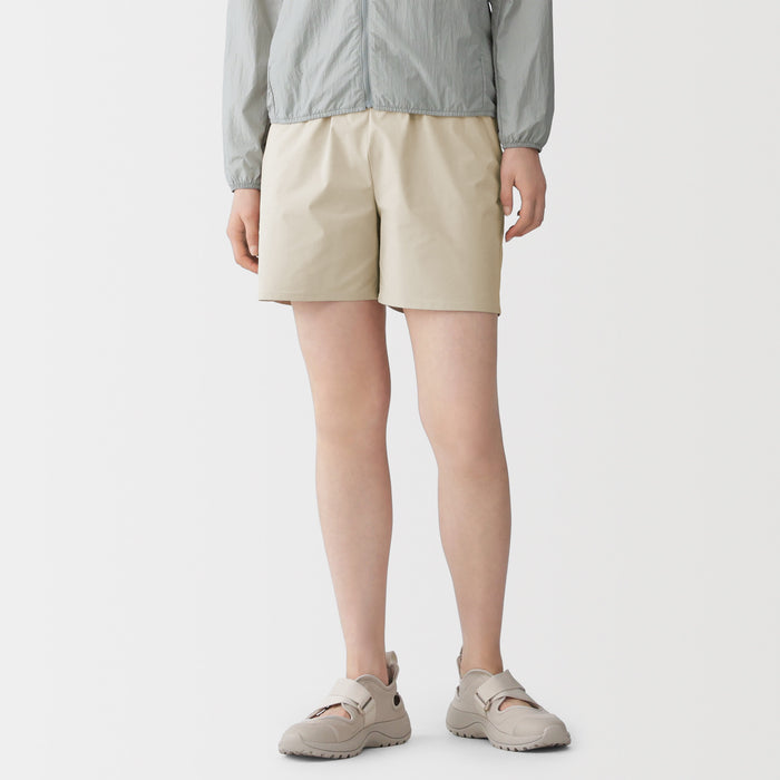 Women's water repellent shorts with a comfortable elastic waistband. Made from a lightweight recycled polyester material that is stretchy for comfortable movement, making them great for everyday and active wear.