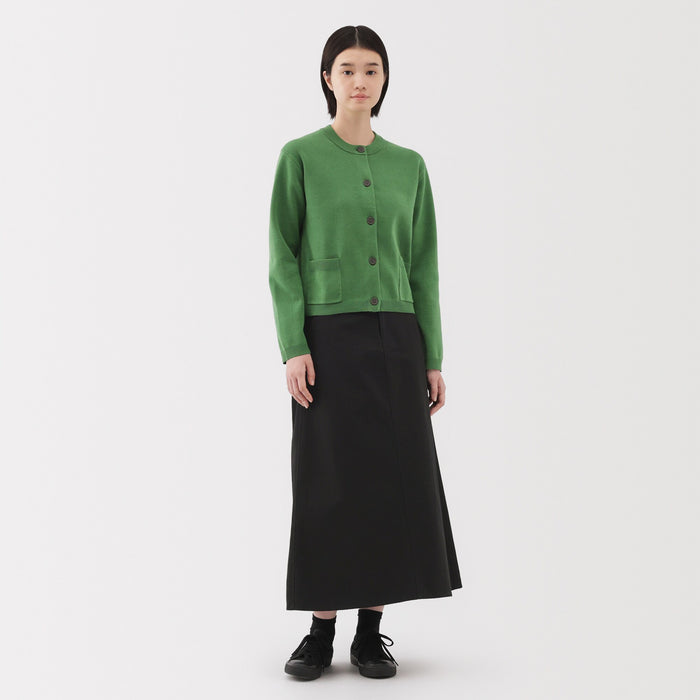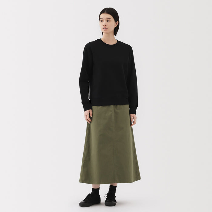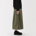 A long A-line skirt that is soft and stretchy, making it comfortable to move around in. The back of the waistband is elastic for easy wearing. Made with organic cotton.