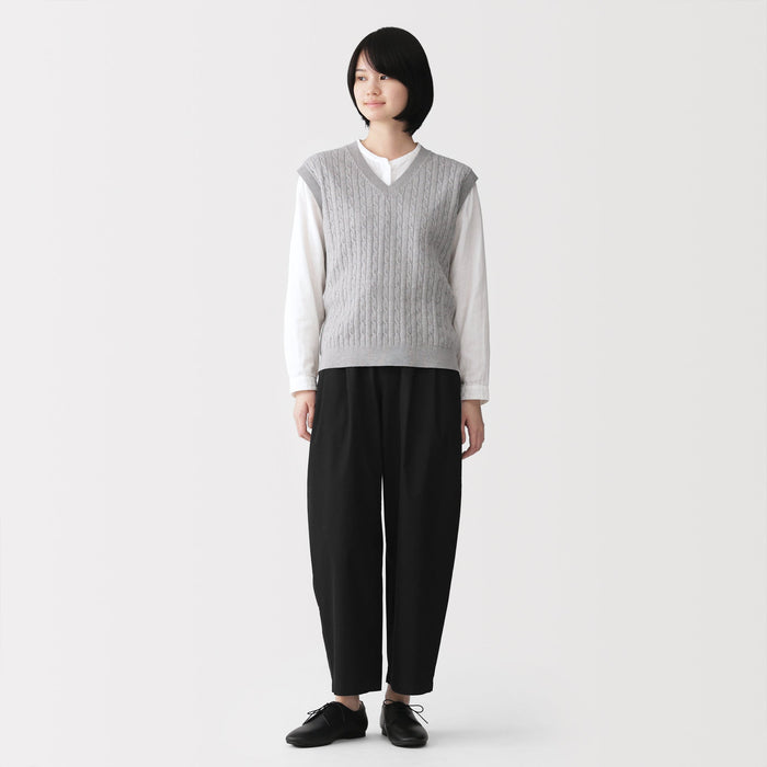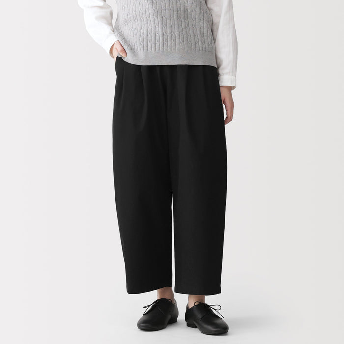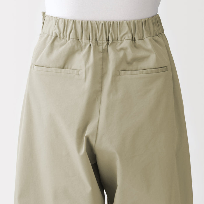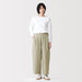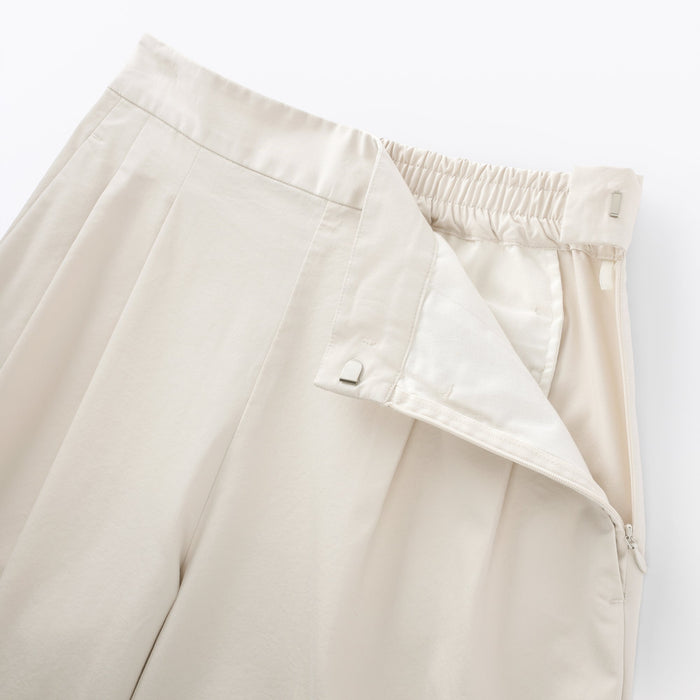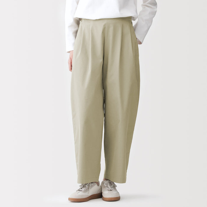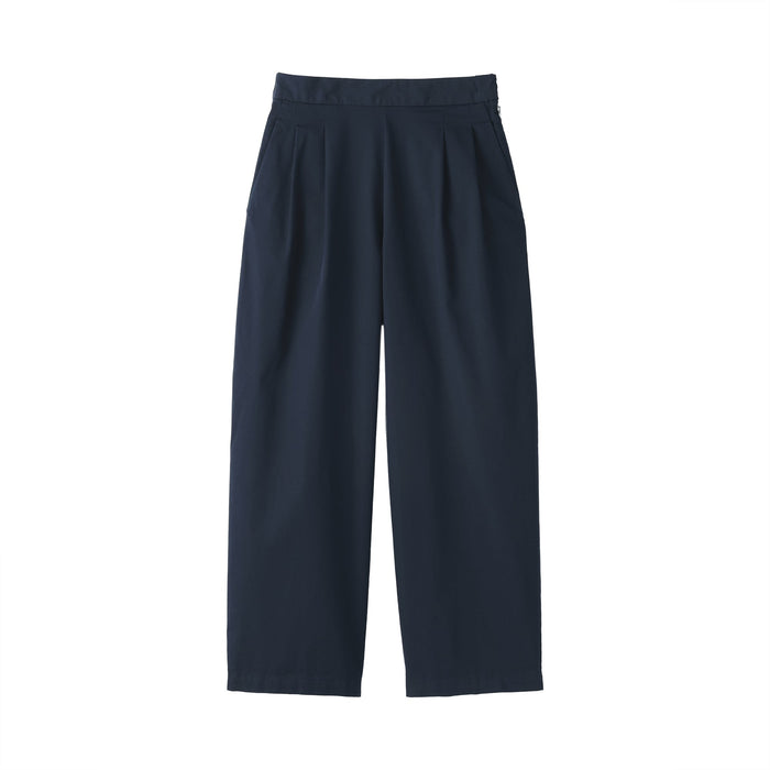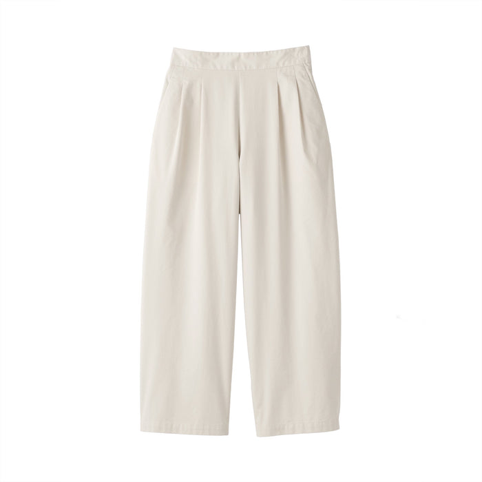 These women's pants have a wide tapered cut and feature a sleek side-open design for a clean waistband. Made from a firm organic cotton blend twill for structure.