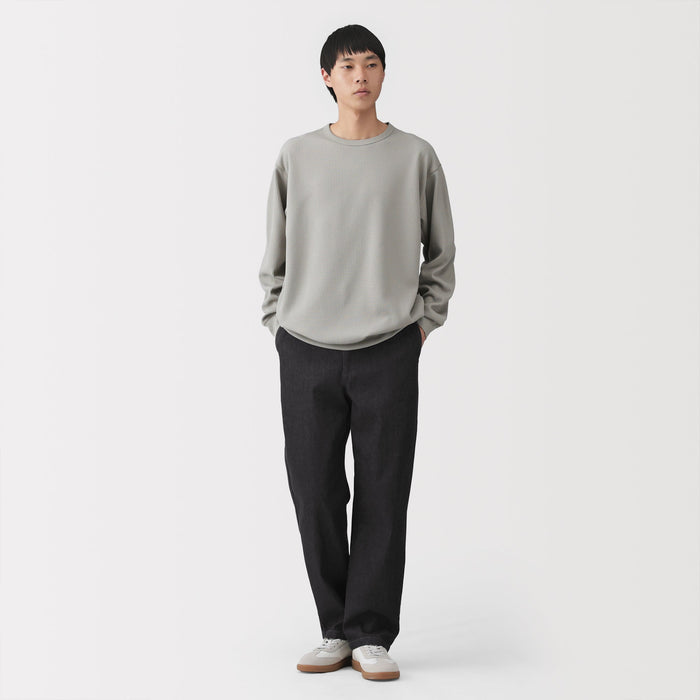 Made with soft and durable 100% organic cotton denim material. Its loose, relaxed fit gives you plenty of room for movement throughout the day. The waistband has a drawstring on the inside for an adjustable fit while maintaining a clean front appearance.