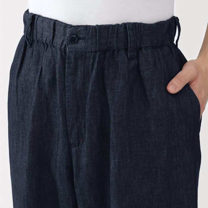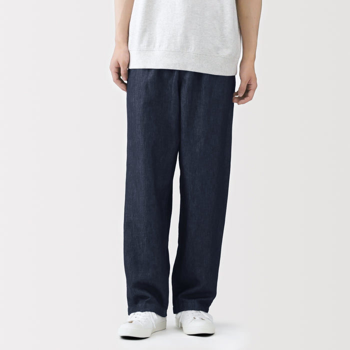 Enjoy all-day comfort in these men's denim pants, made with a soft organic cotton denim material that features a hemp-like texture. High-waisted with a relaxed, straight leg silhouette, these pants are a stylish and versatile piece for any spring wardrobe.