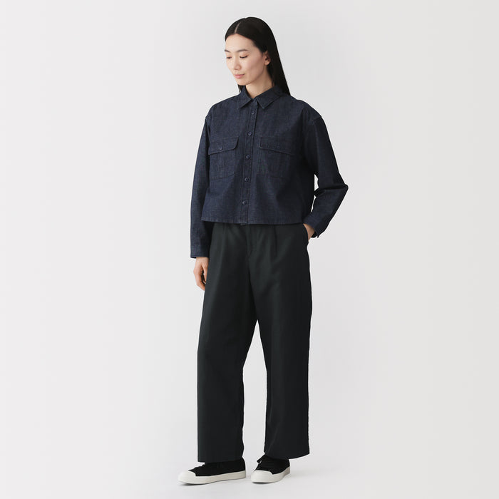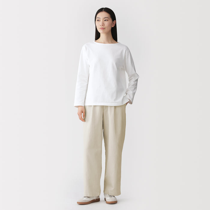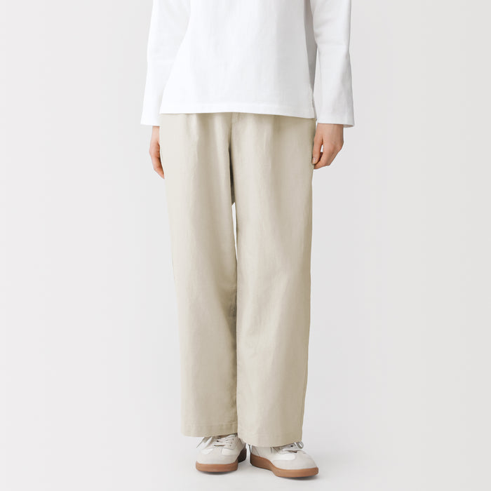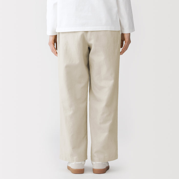 Enjoy all-day comfort in these women's twill pants, made with a soft organic cotton material that features a hemp-like texture. High-waisted with a relaxed, straight leg silhouette, these pants are a stylish and versatile piece for any spring wardrobe.