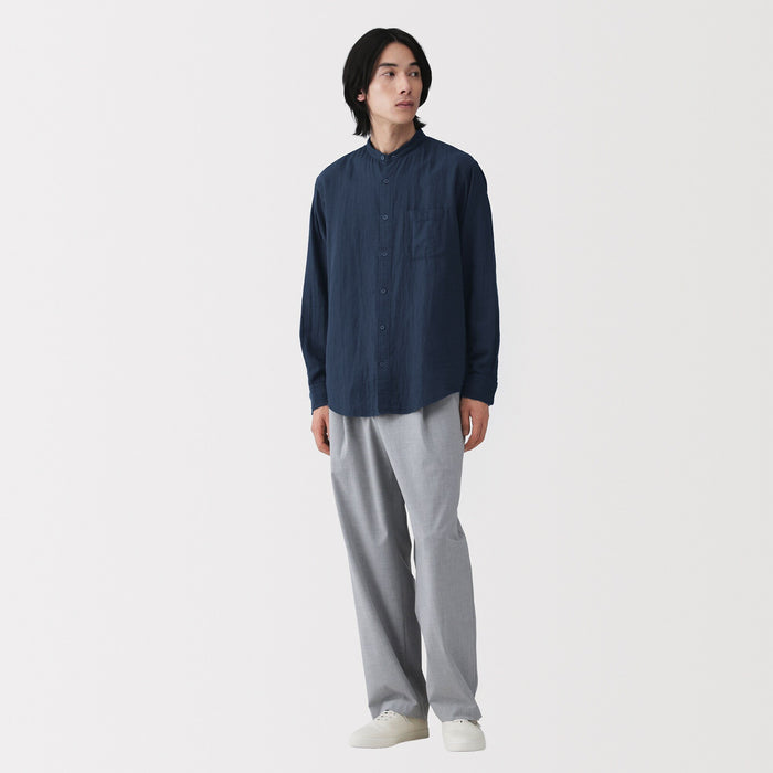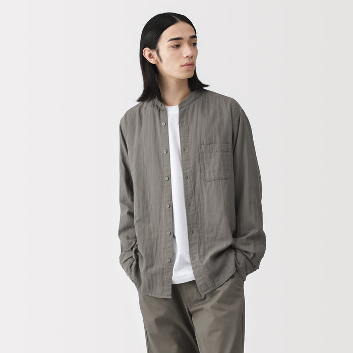 A light and soft men's shirt with a stand collar and loose silhouette.