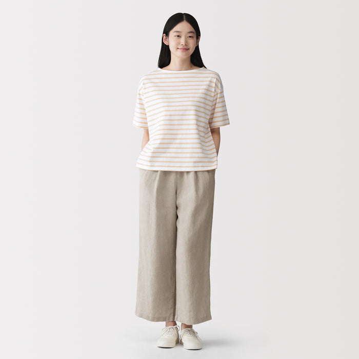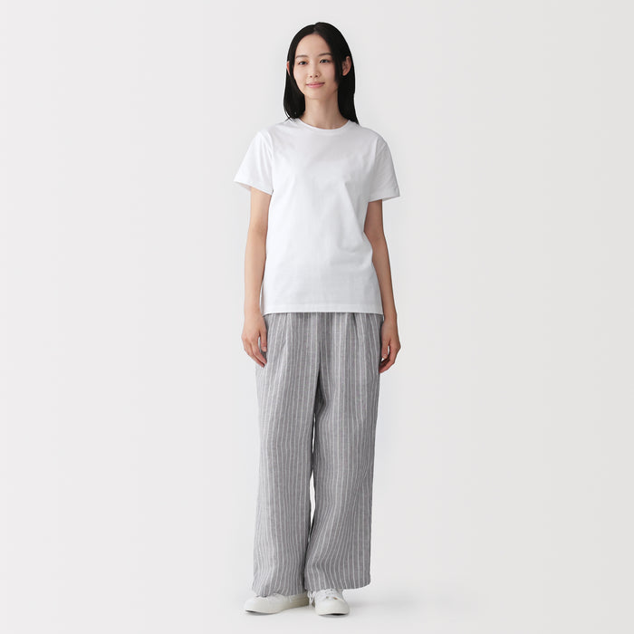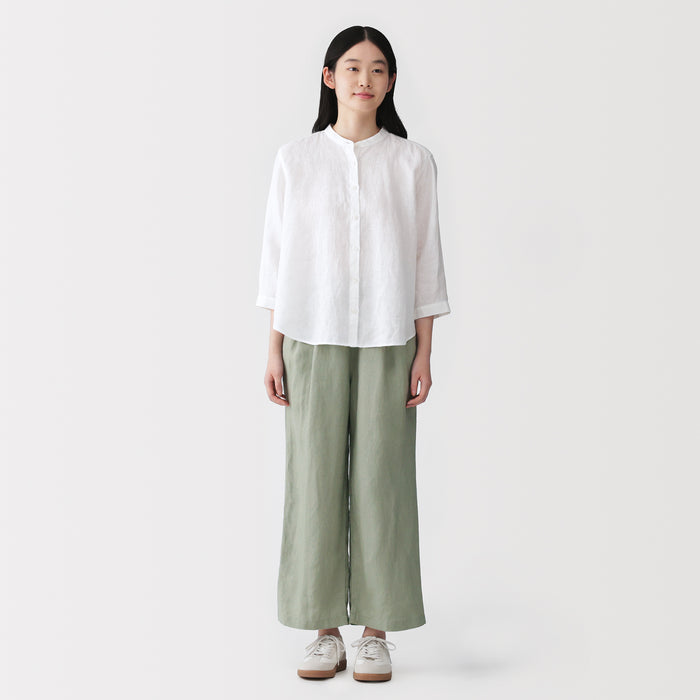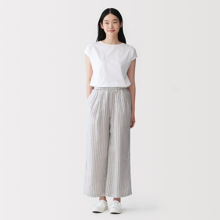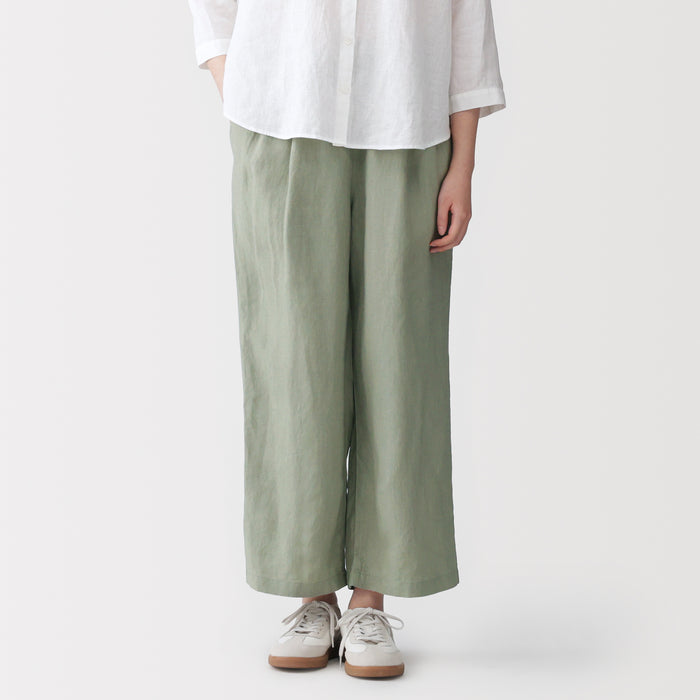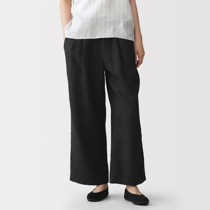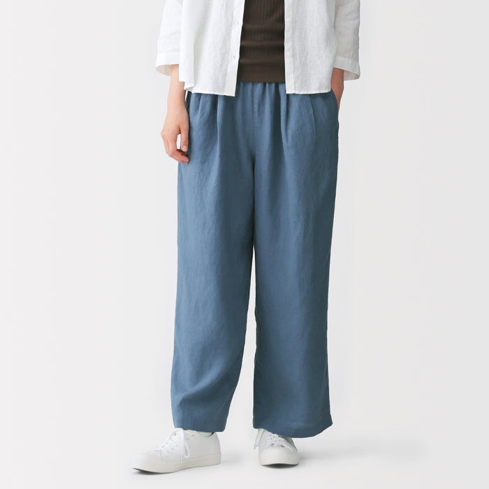 Lightweight women's trousers made with cool, breathable linen. Its wide-leg silhouette is comfortable, and the soft, washed texture feels and fits better with each wear. The easy waistband is adjustable with a drawstring hidden inside for the perfect fit.