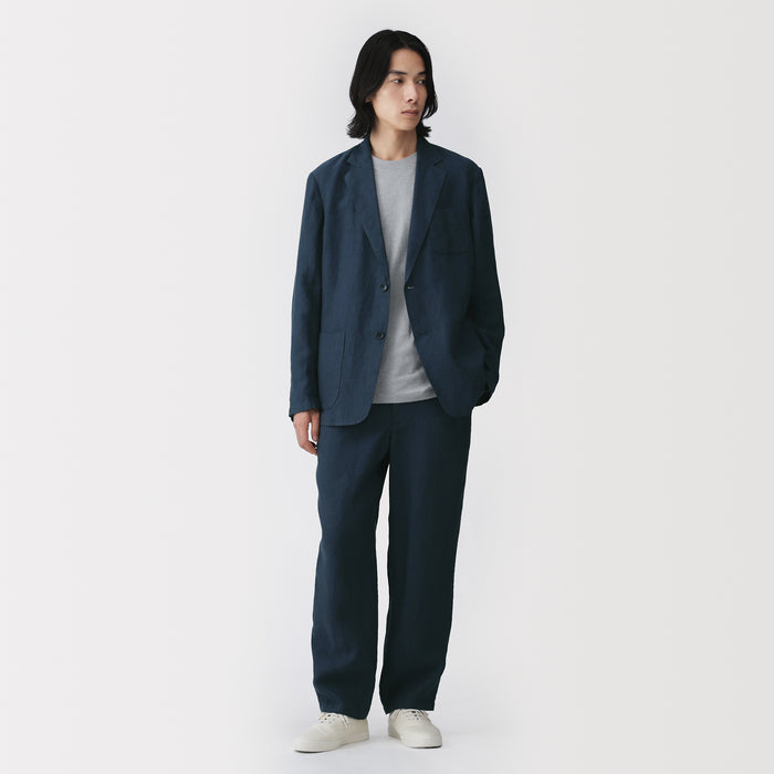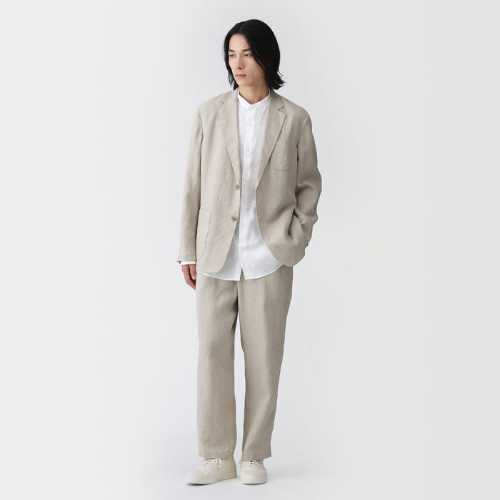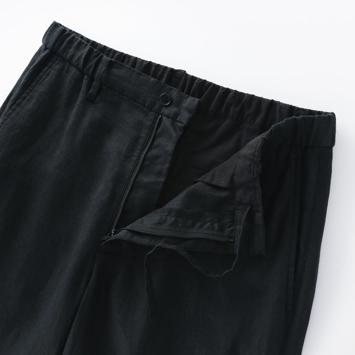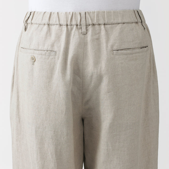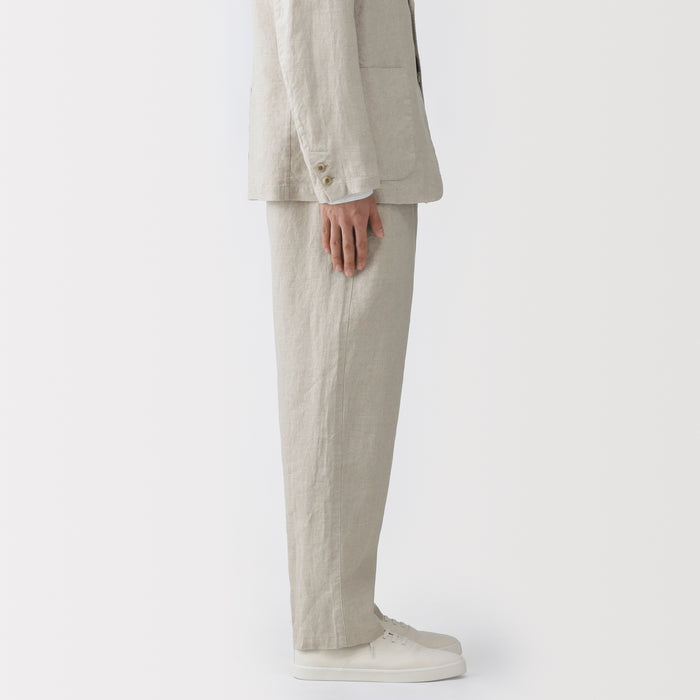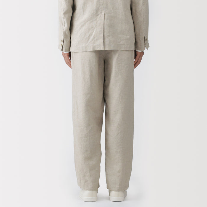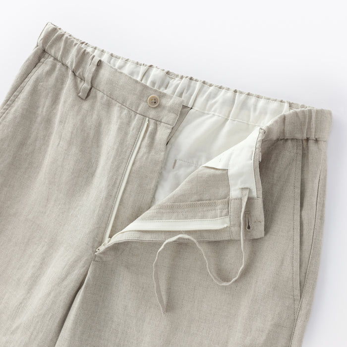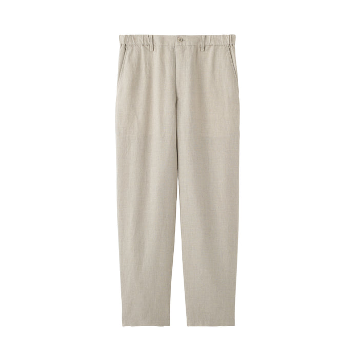 Men's tapered pants made with cool, breathable French linen. It features a soft, washed-out texture that fits and feels better with each wear. It has a drawstring on the inner waist for an adjustable fit. Linen dries quickly and feels cooling when worn, making it the perfect option for summer.