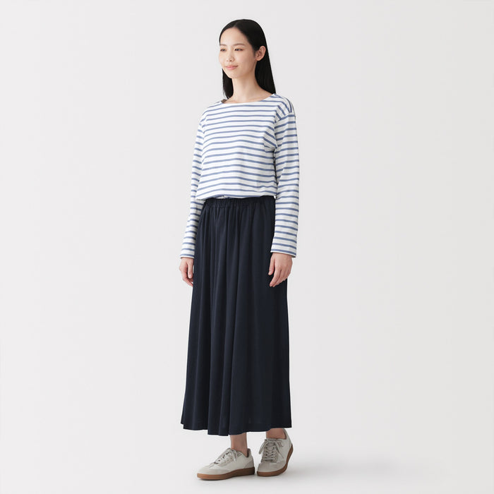 Made from a jersey material using regenerated cellulose fibers, this skirt is soft to the touch and comfortable to wear. The blend of lyocell and cotton is thin and supple, with just the right amount of stretchiness.