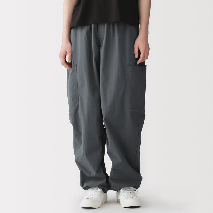 These wide leg utility pants are stylish and convenient, with its loose fit and water repellent material. The elastic waistband is adjustable with a drawstring hidden inside for an easy fit. You can also adjust the hems for different styling options; keep them relaxed for a wide silhouette, or cinch them in for a casual look.