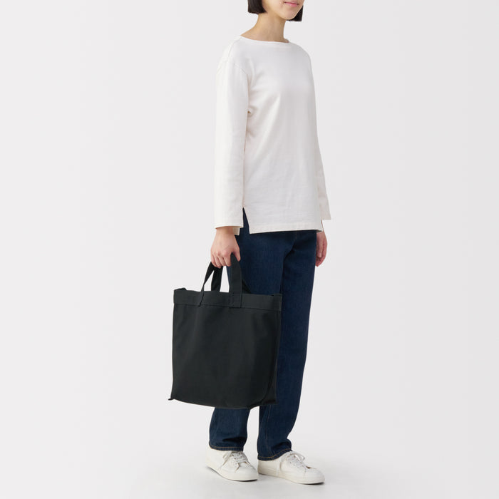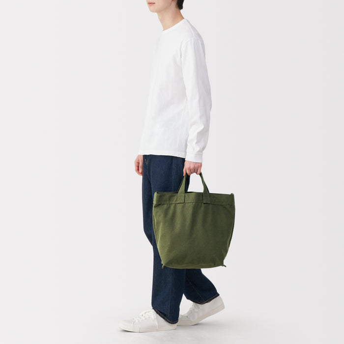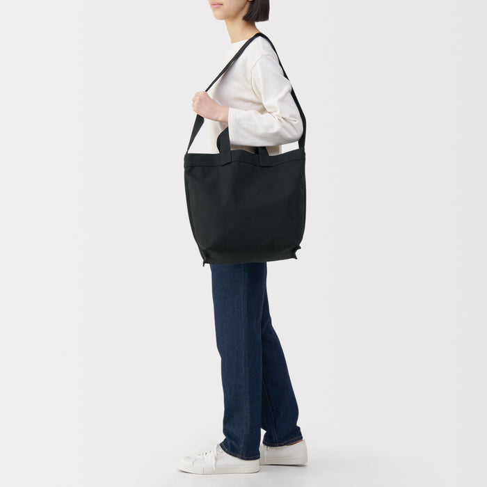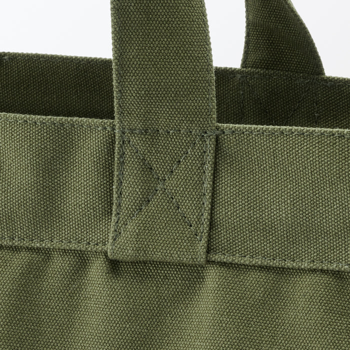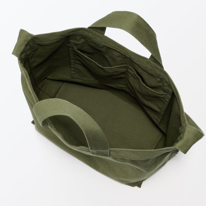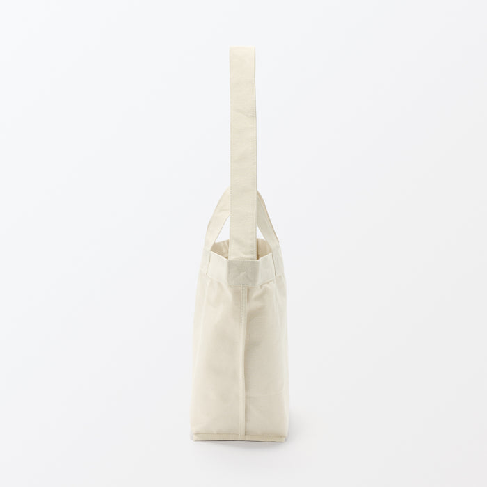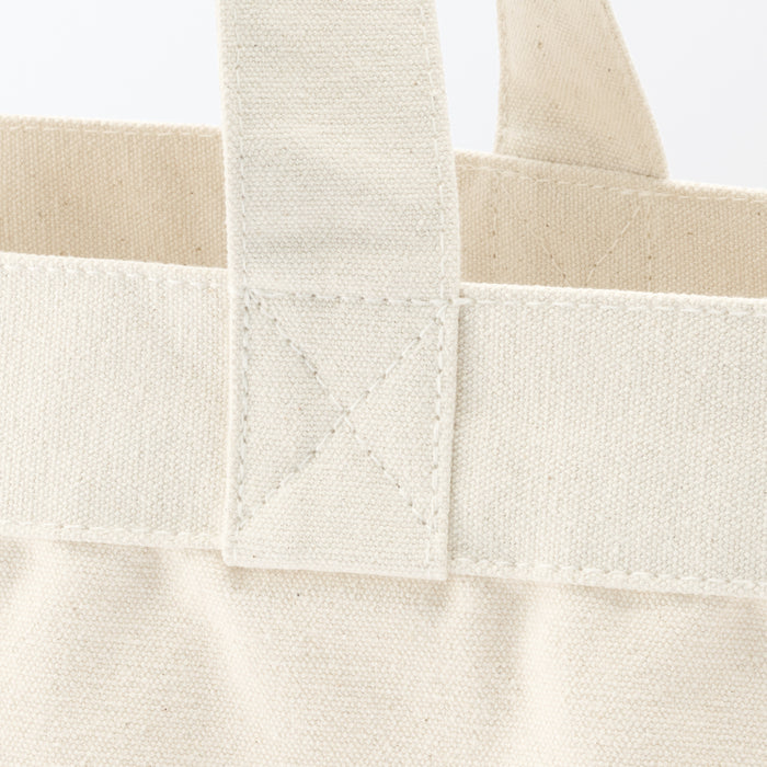 An everyday tote bag made of organic cotton canvas with just the right thickness. Featuring multiple compartments to sort your belongings. Designed with two straps; a handle for holding, and a longer strap to wear on your shoulder.