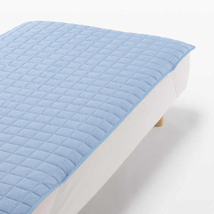 Made from a blend of nylon, polyester, and spandex, the Cool Touch fabric is designed to be stretchy, smooth, and silky. Its unique yarn shape increases thermal conductivity, providing a moisture-wicking, cooling sensation. The filling of this quilted pad is composed of fine fibers for added softness.