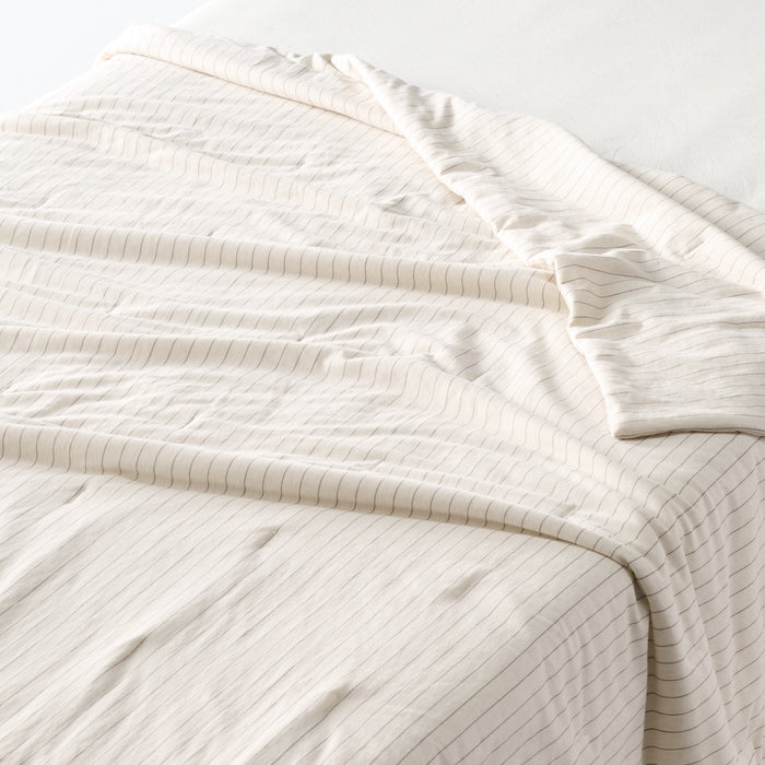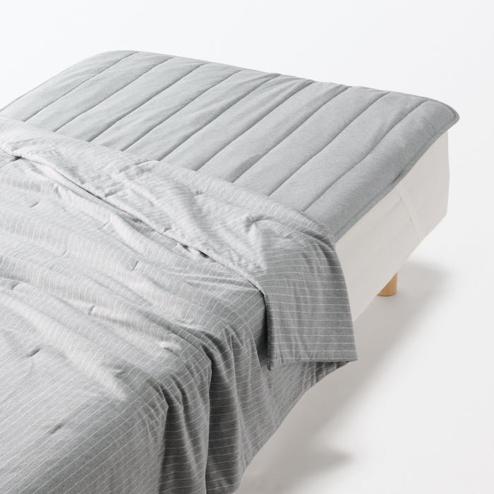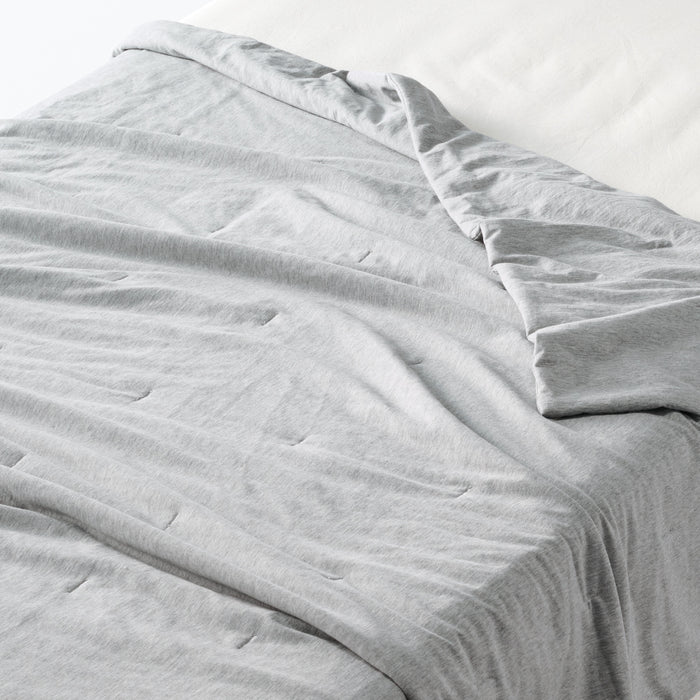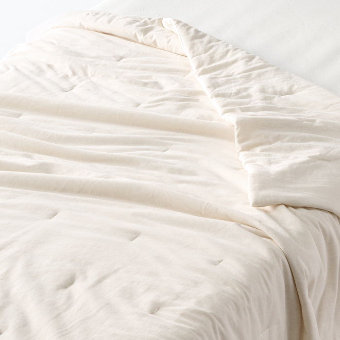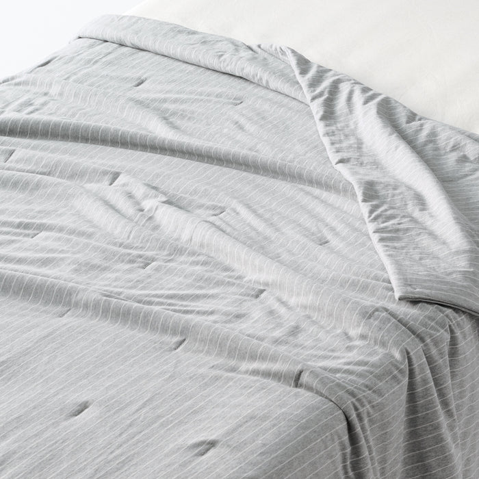 Made from a specially processed cotton fabric to give it a soft and cool sensation when touched. The filling of this quilted duvet is composed of fine fibers for added softness.