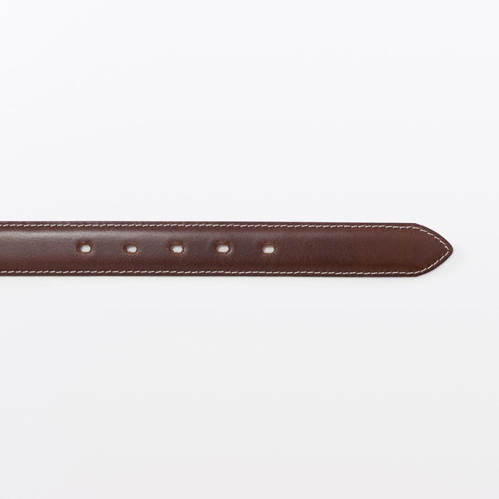 An adjustable unisex belt made from genuine leather tanned with natural vegetable tannins, featuring medium-width stitching. Cut off the excess length to adjust it to the right size.