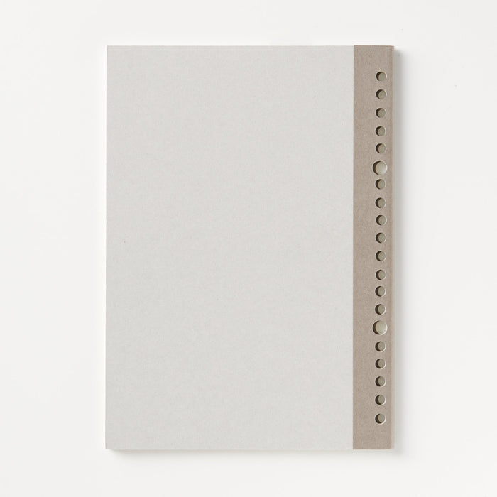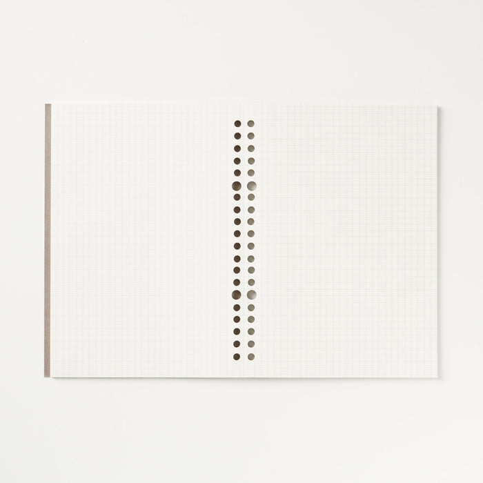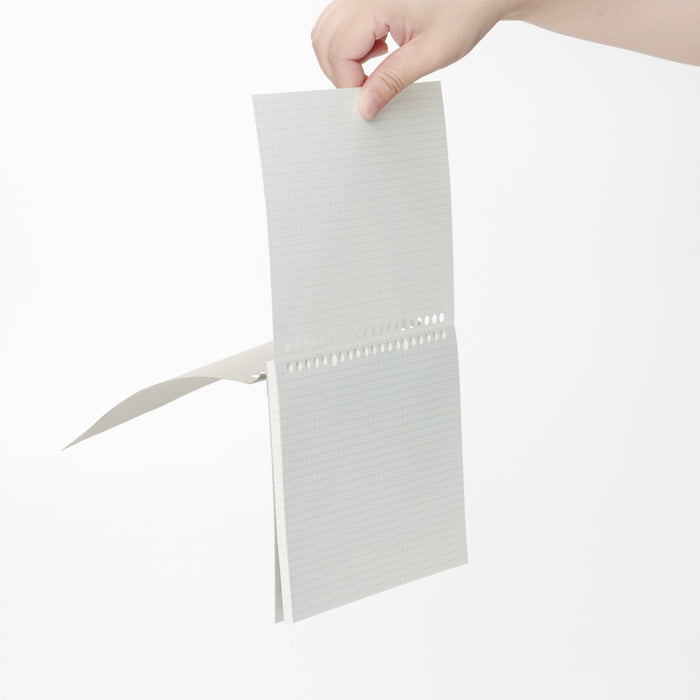 A A5 grid notebook that contains graph paper that can be removed easily. Can be placed in MUJI binders.