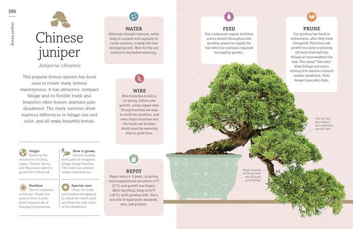 Let Happy Bonsai guide you along the path to enlightenment, with care and display profiles for 40 top trees and fully illustrated step-by-step of more than 20 bonsai techniques and styles.