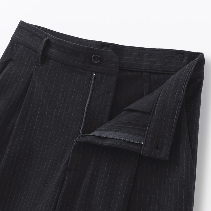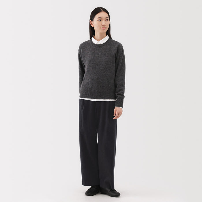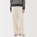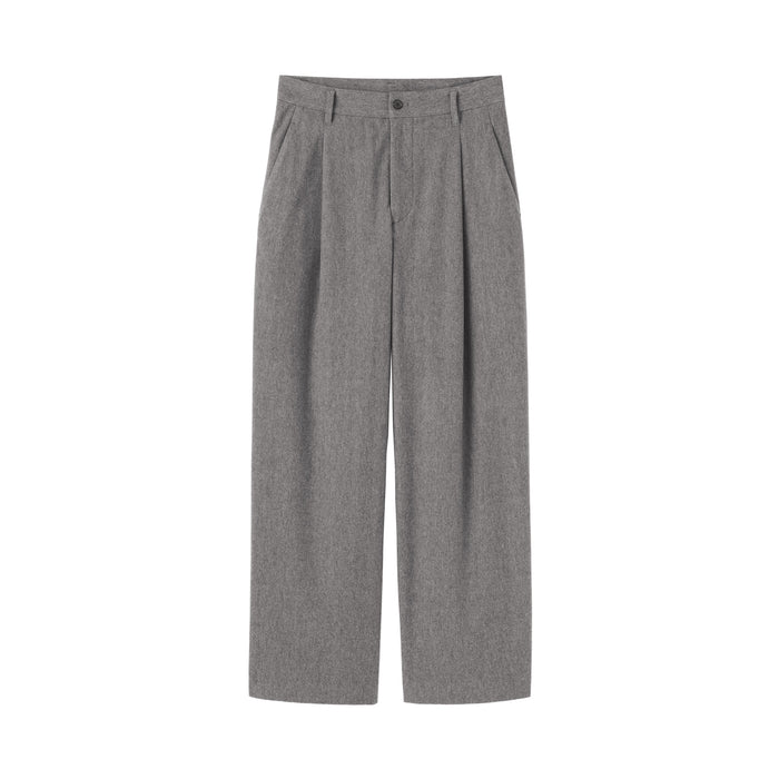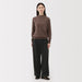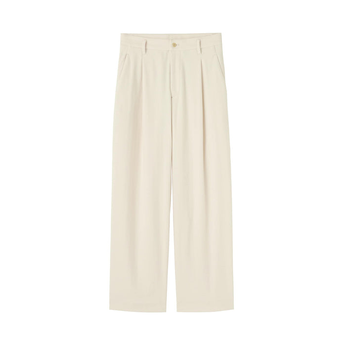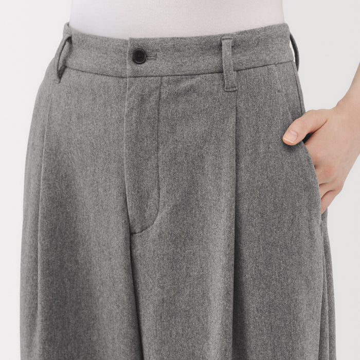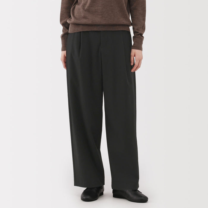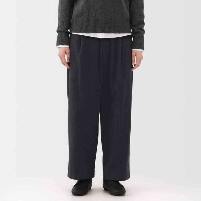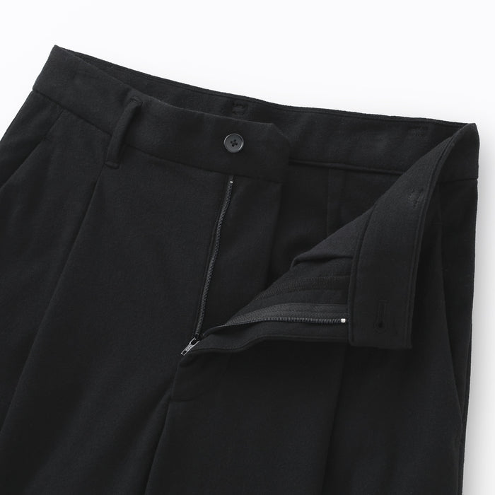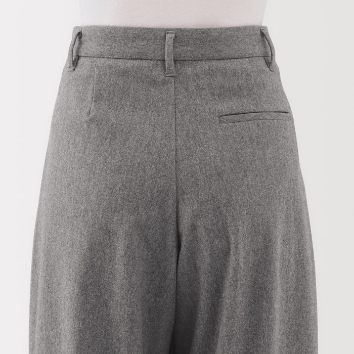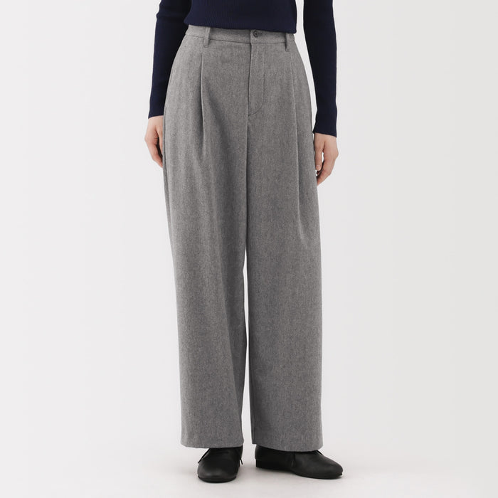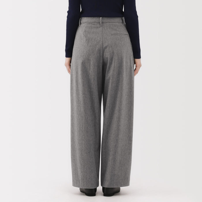 Women's wide pants with a front opening and darts for a neat appearance, made using fabric that is brushed on both sides for superior softness and stretchiness. The wide leg silhouette looks great with both loose tops and fitted knitwear. Made with organic cotton.
