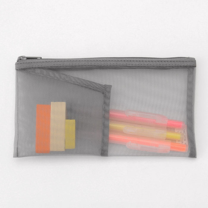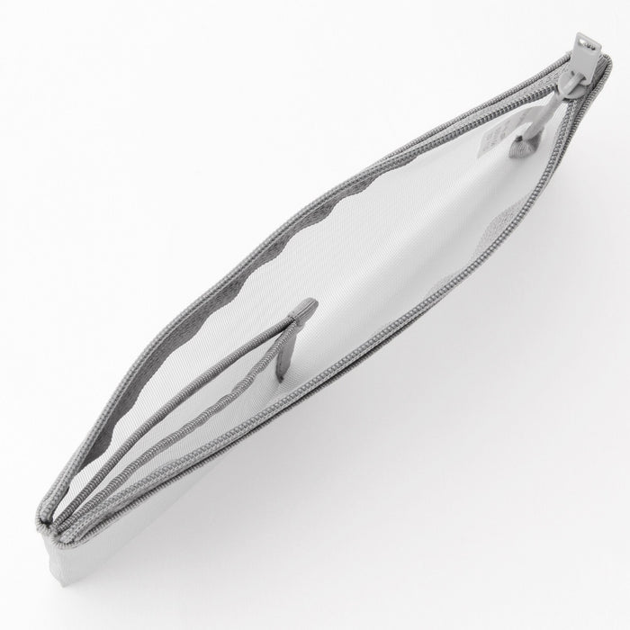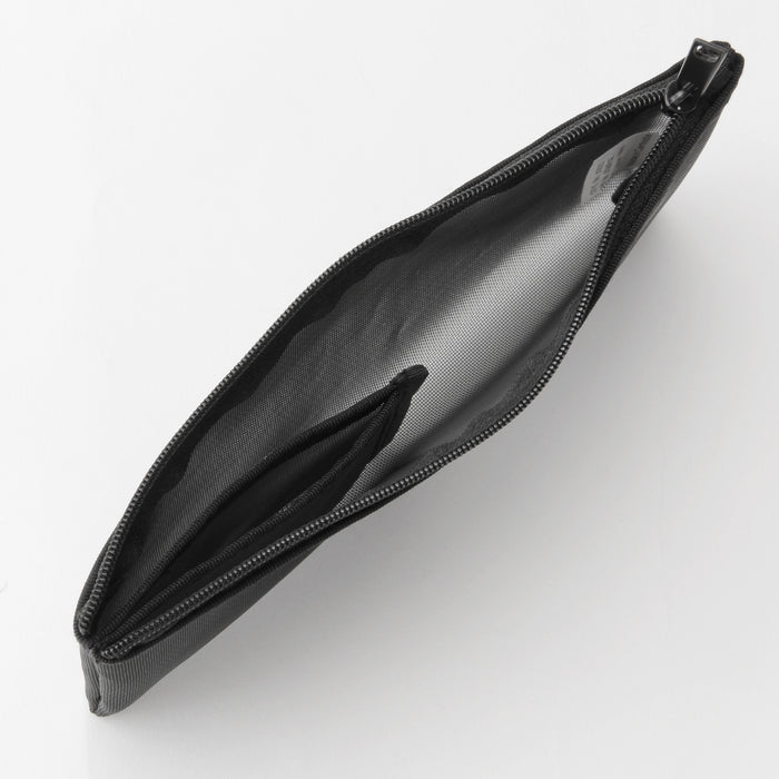 A flat and compact pen case made from a sturdy nylon material that allows you to quickly and easily see what is stored inside.