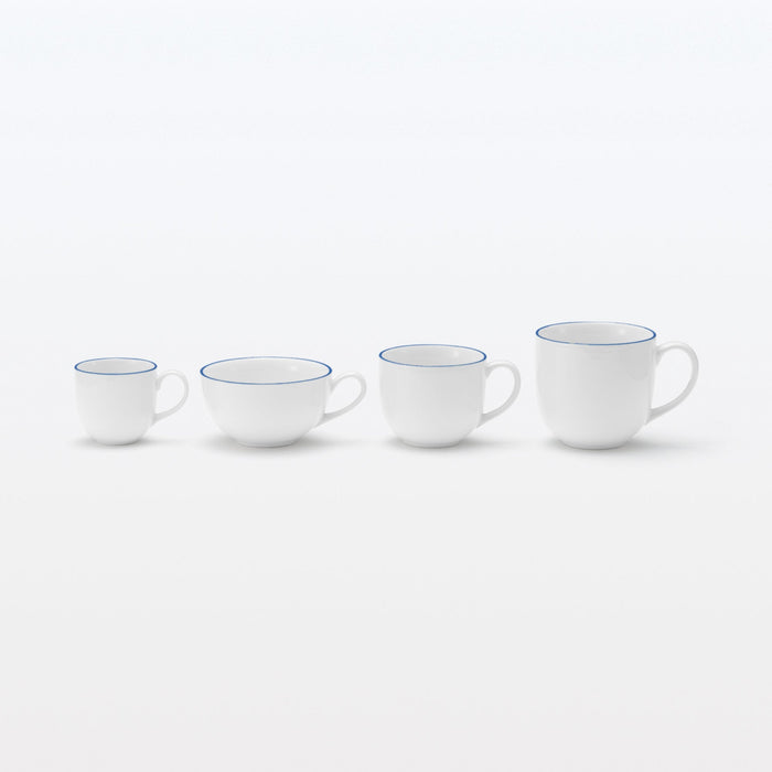 A versatile porcelain mug that can be used not only for coffee and tea, but it can also hold dipping sauces and be served on a saucer for fancier occasions, or be used as a soup mug. The handle is designed so the thumb and index finger fit in a well-balanced manner, making it more stable and easy to hold.