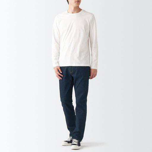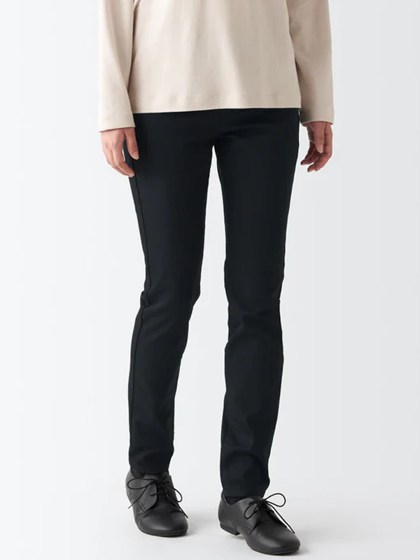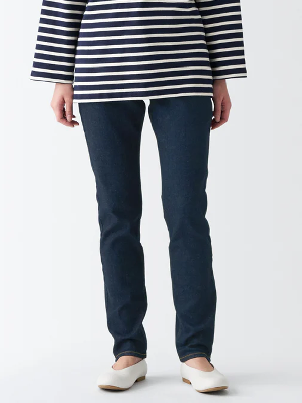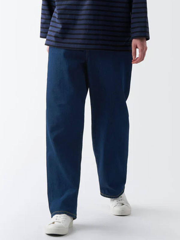 Made with a moderately roomy silhouette. The waist area has been made looser, and the hem is gently tapered from the knees to the hem.