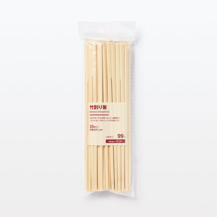 Contains 20 pairs of durable chopsticks made from flexible, fast-growing bamboo, perfect for outdoor picnics and parties. By using the joints and other parts, the bamboo material is used more effectively and without waste. They are unpainted so you can feel the natural texture of the material.