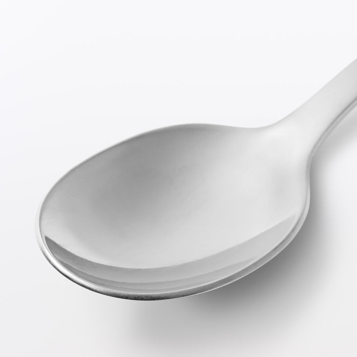 This stainless steel dessert spoon has a standard design that suits any type of cuisine. The handle length and curve angle have been carefully designed to make it easy to hold and use.