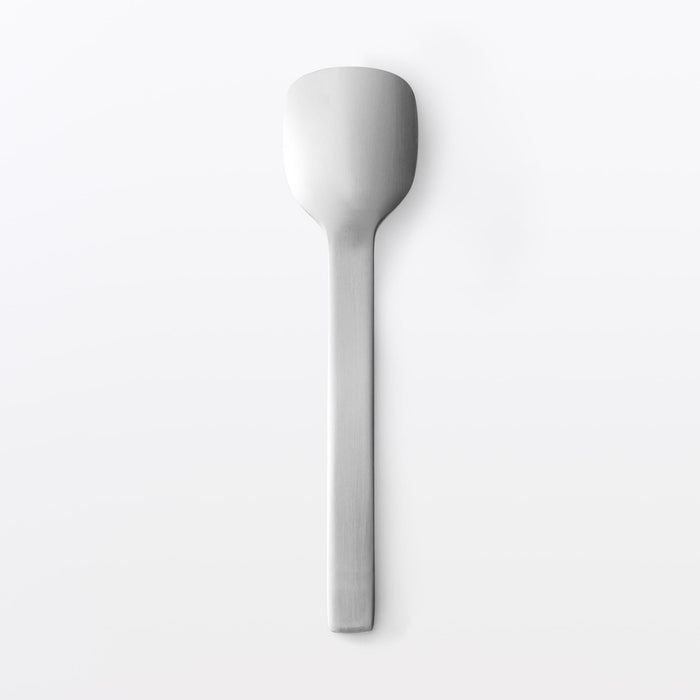This stainless steel ice cream spoon has a spatula-shaped design that is convenient for eating ice cream and desserts.