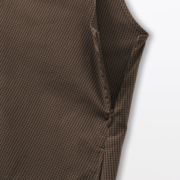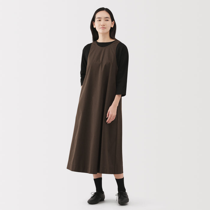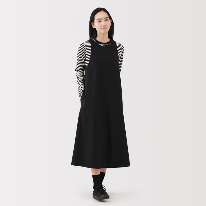 This sleeveless dress is made from a quick-drying blend of organic cotton and polyester for a smooth broadcloth material that resists creasing even after washing. The skirt is designed with ample fabric for an elegant drape that flows gracefully with every step. The wide armholes allow you to layer it over a t-shirt or blouse comfortably, providing endless styling options.