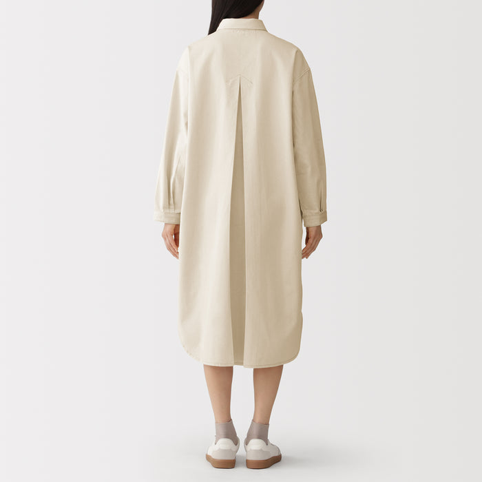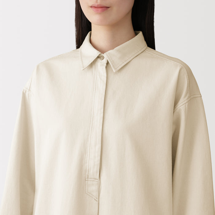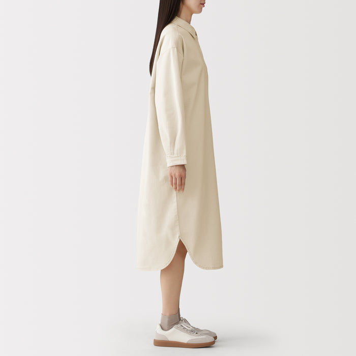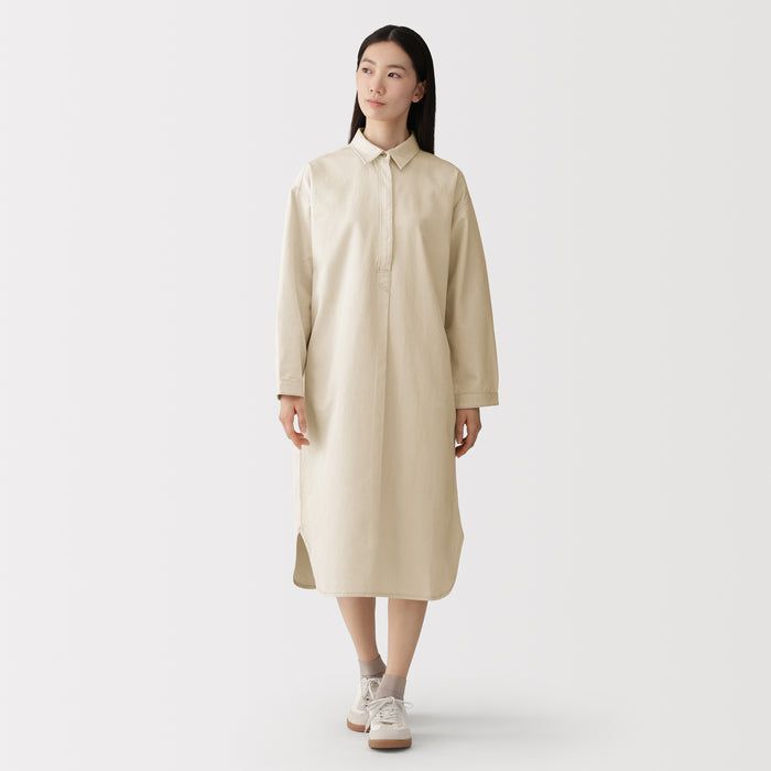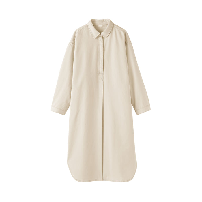 This long sleeve dress has a lightweight and airy texture that is comfortable to wear even on warm days. The half placket features a fastening button at the collar and a zipper to show off your inner layer for more styling options.