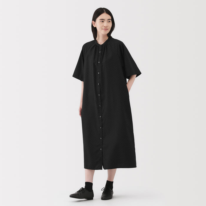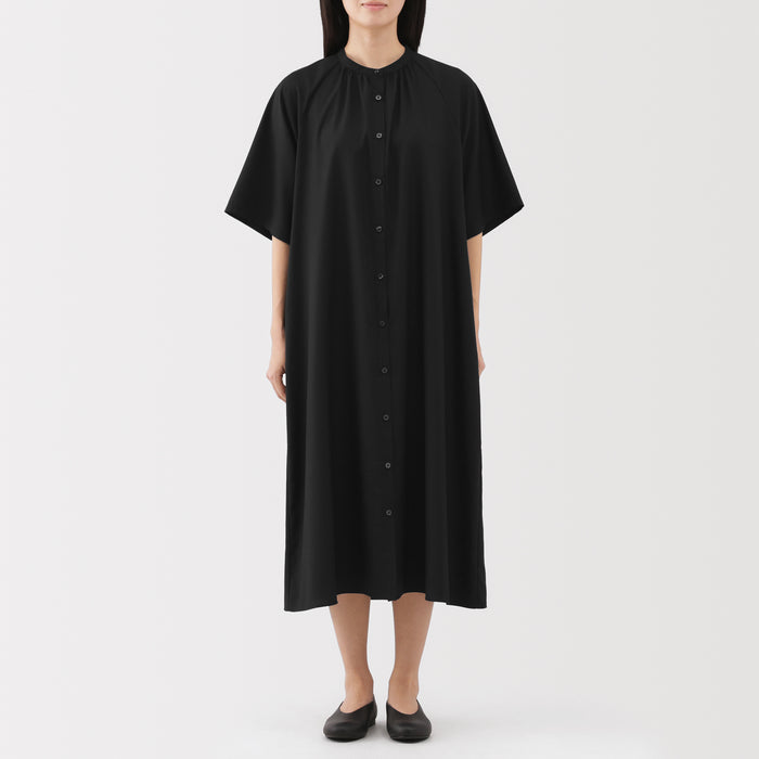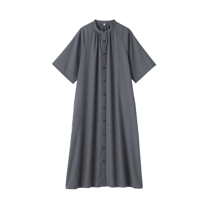Made from recycled natural fibers, this half-sleeve dress is lightweight and smooth. The sleeves are wide and relaxed so it is comfortable to wear and move in. Its button-up design makes it versatile, allowing you to style it on its own or layered over your outfit.