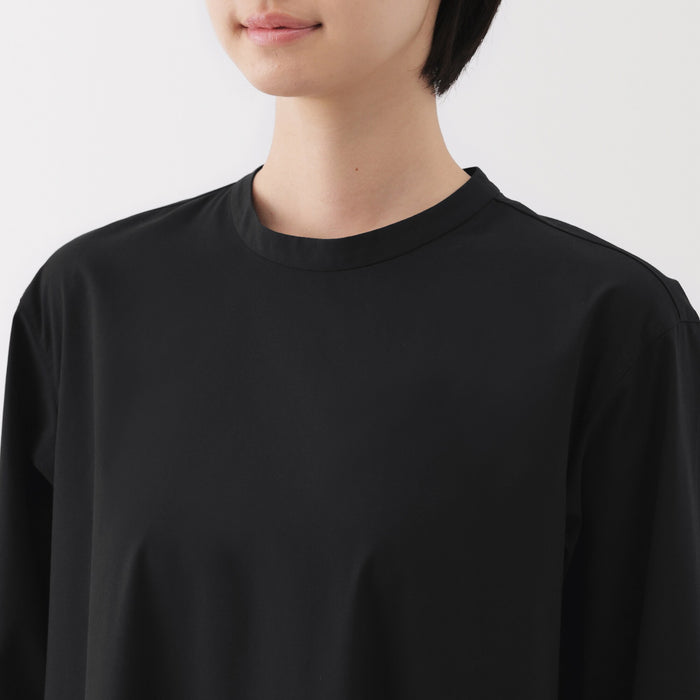 This long sleeve dress is perfect for busy women on the go, made from a blend of organic cotton and polyester. With its quick-drying fabric, you'll stay comfortable all day long. Upgrade your wardrobe with this versatile and eco-friendly pullover dress.