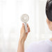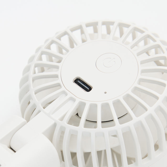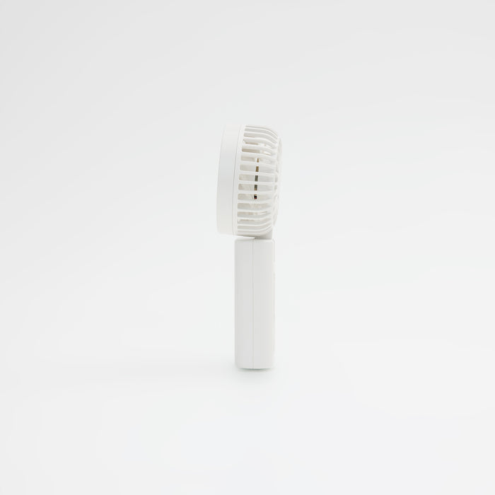 This portable fan is the perfect size to bring with you on the go. The head is foldable up to 120°, so it can be angled up and used on a tabletop as well. Simple button control allows you to easily turn the fan on/off and cycle through the 4 levels of wind speed.