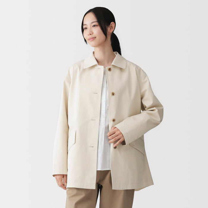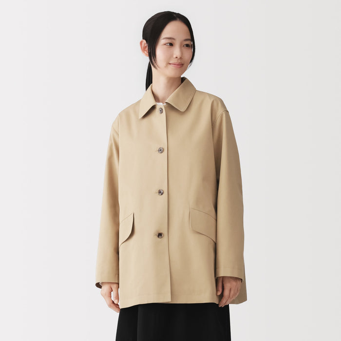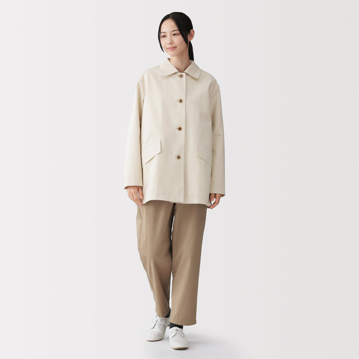This women's half-length coat is made from a sturdy organic cotton twill fabric with a water-repellent finish.