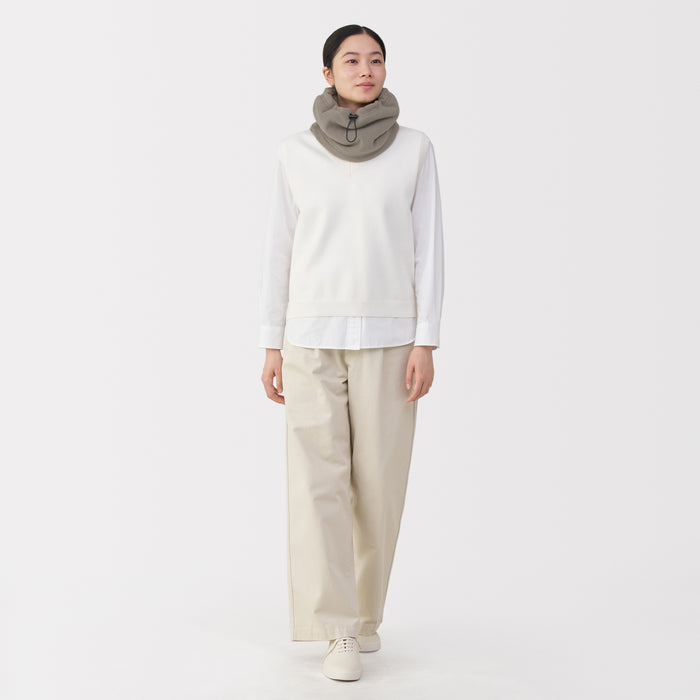 This lightweight neck gaiter is made of soft fleece and lined with fluffy boa to keep you warm and protected from the cold. The drawstring allows you to adjust the tightness to keep the warmth in.