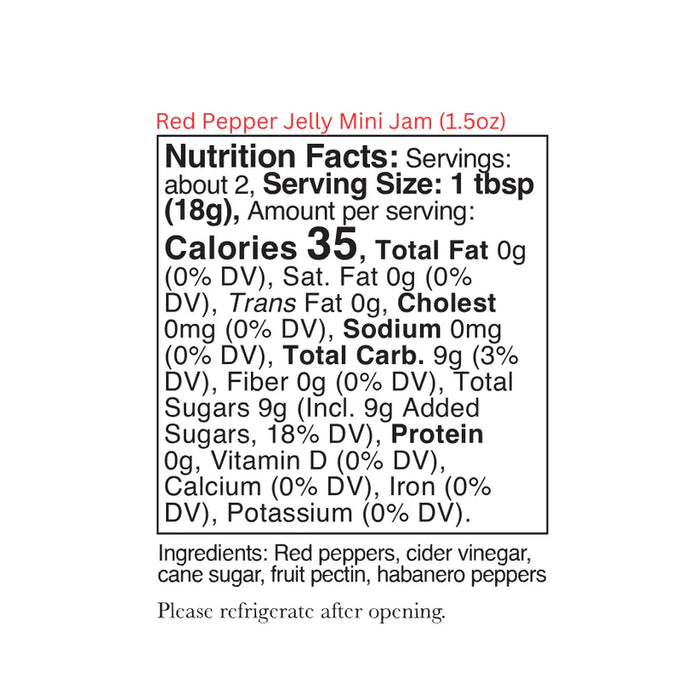 Red Peppers, Cider Vinegar, Cane Sugar, Citrus Pectin, Habanero Peppers