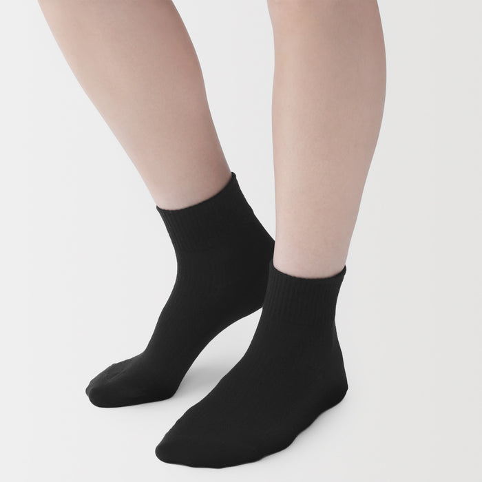 These moisture wicking socks are made using soft and breathable material designed to prevent sweatiness while wearing. The instep features a ventilating mesh knit to suppress sweat odors. There is a line on the sole for easy identification in storage.