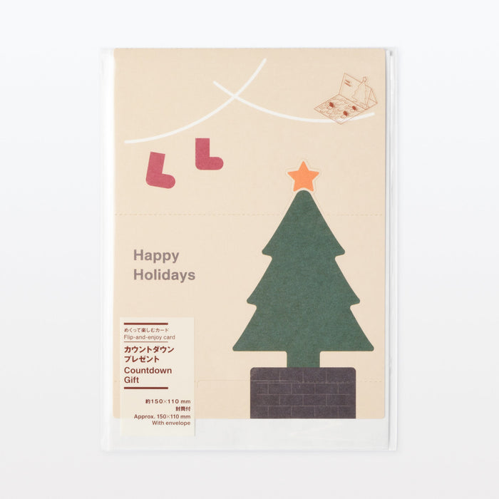 This interactive countdown message card is a fun way to send holiday wishes to your loved ones! Flip up one standing motif every day from December 1st until Christmas Eve. Display the cute and festive scene inside of the card by folding it open.