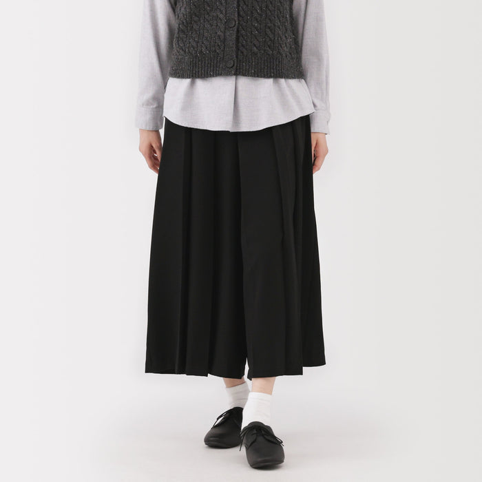Wide hakama pants based on the traditional Japanese outfit, simplified into a design that is easy to move around in and can be worn everyday. These pants feature a side opening with a stretchy back waist band to allow for flexibility and movement throughout the day.