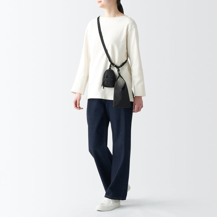 An adjustable shoulder strap that can be attached to small bags, compatible with our sacoche bags. It is designed with additional loops that allow you to customize it by hanging keychains and MUJI mini bags.