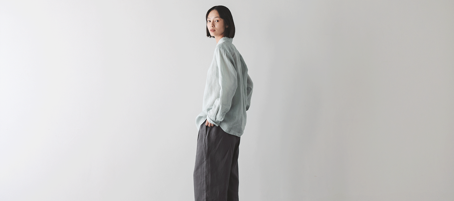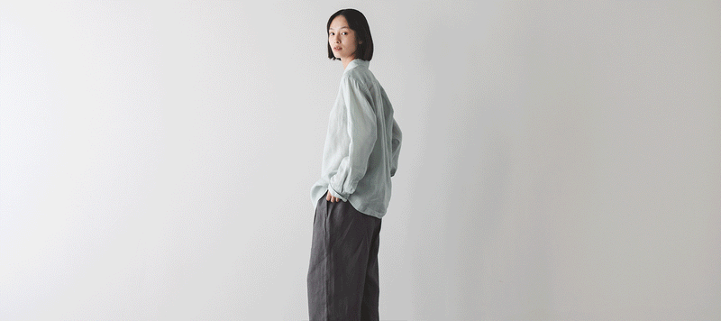Wide pants with front darts, made with twilled hemp and organic cotton for a soft, plump material that's comfortable and breathable.