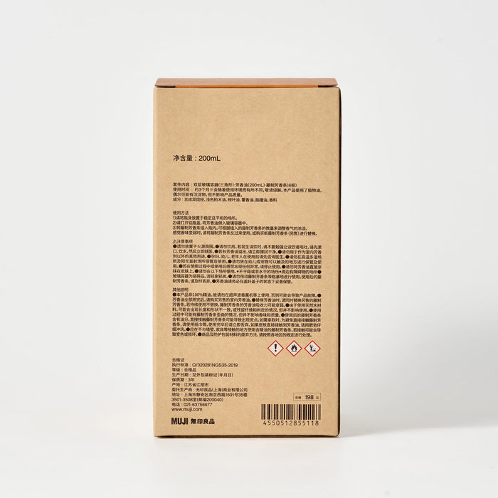 There may be cases where rattan sticks are distorted during use, but this does not affect the fragrance or quality. The rattan sticks contain oil after use. Direct contact with the rattan sticks may cause spots to appear. To avoid direct contact with the rattan sticks, use a paper towel or the like when picking them up, and dispose of them immediately after use. If the oil comes into direct contact with your skin, rinse carefully with soap. Use rattan sticks containing essential oils in places where they do not come into contact with walls, furniture, etc. Contact may cause discoloration or damage.