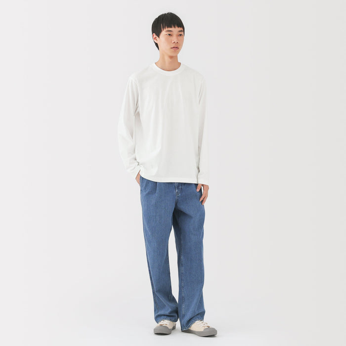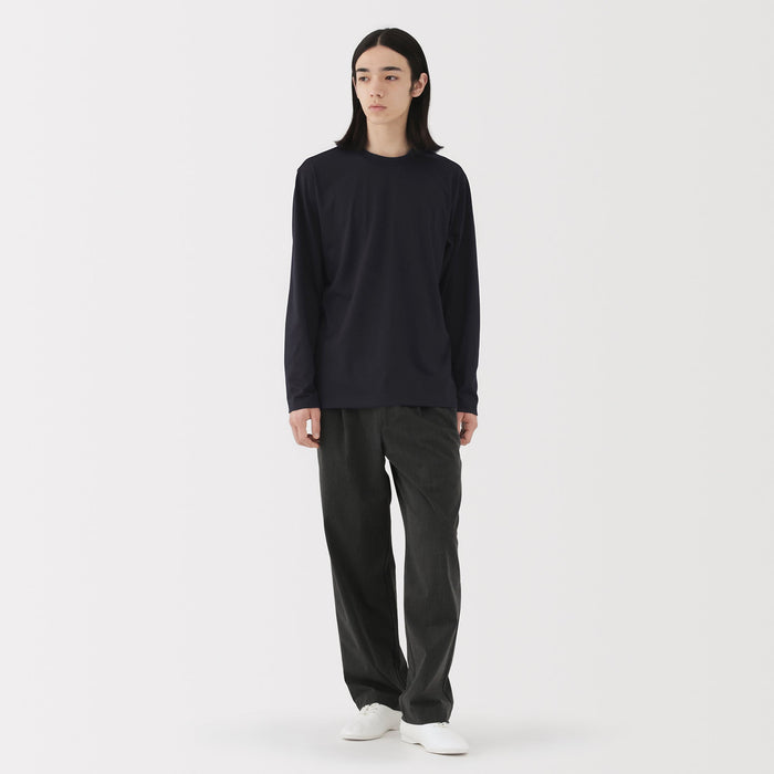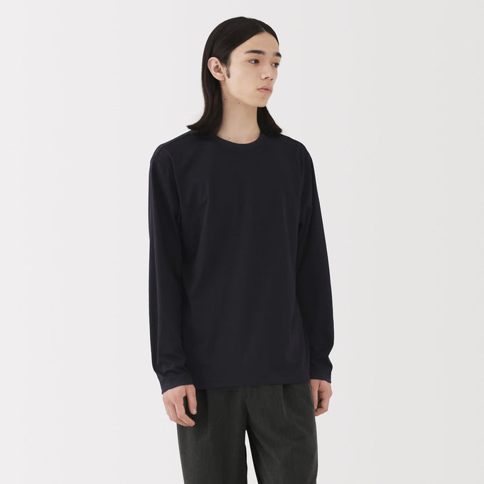 A classic men's long sleeve t-shirt with a boxy silhouette with just the right amount of room. Perfect for wearing all day long, either on its own or layered for extra warmth. Made with a blend of cotton and polyester that is lightweight and soft on the skin.